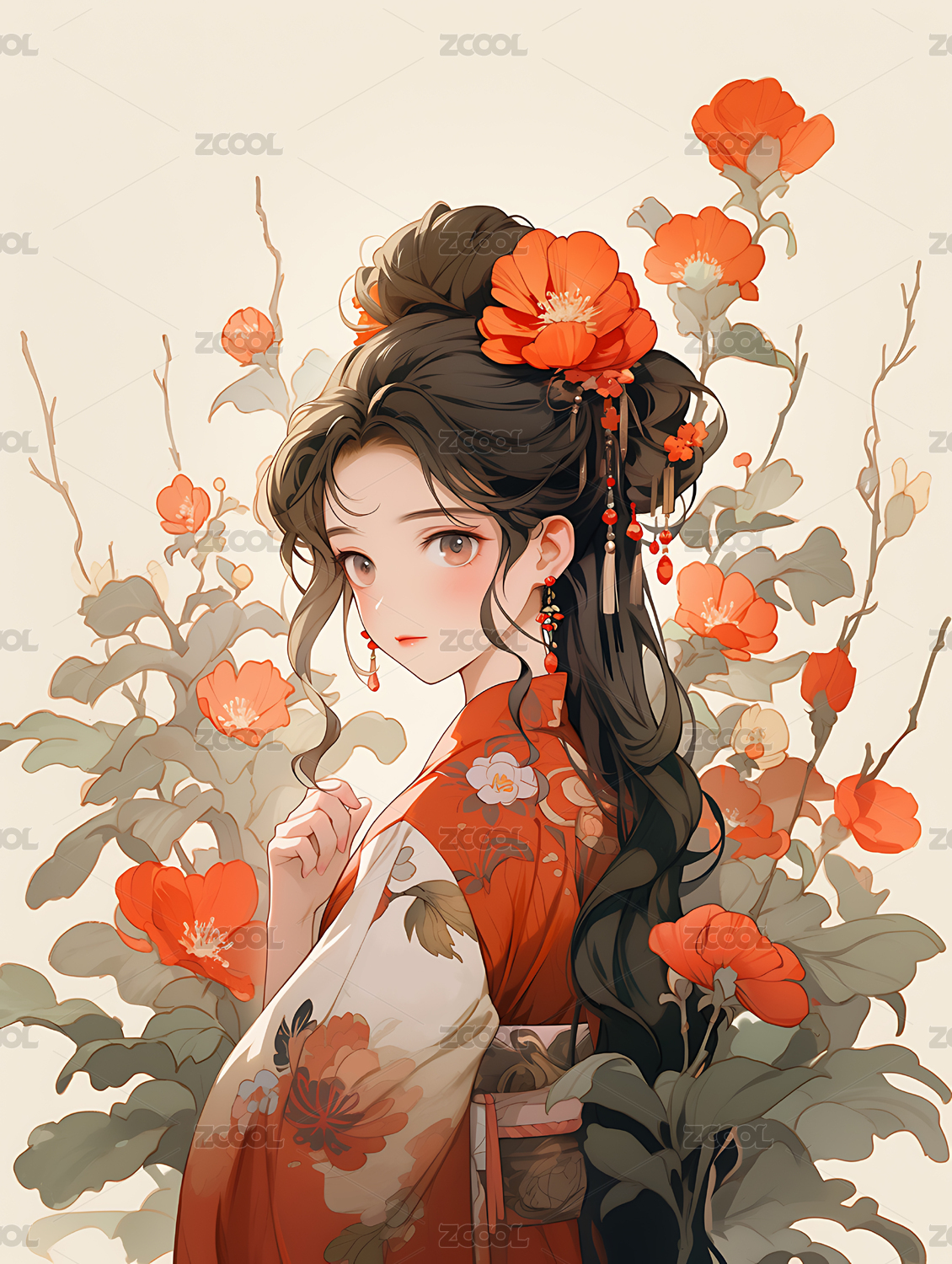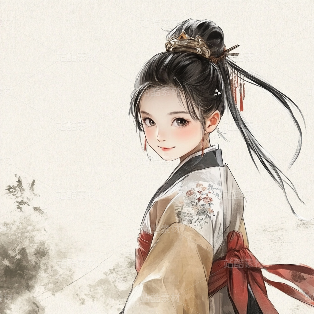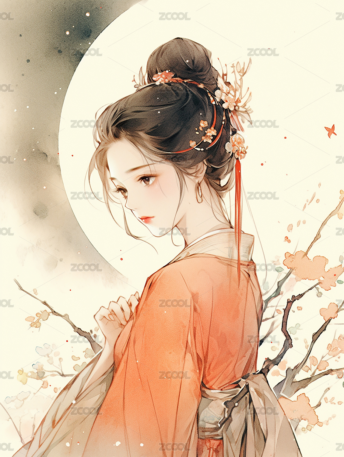 水墨中国风毛笔画国画图片工笔人物花鸟山水