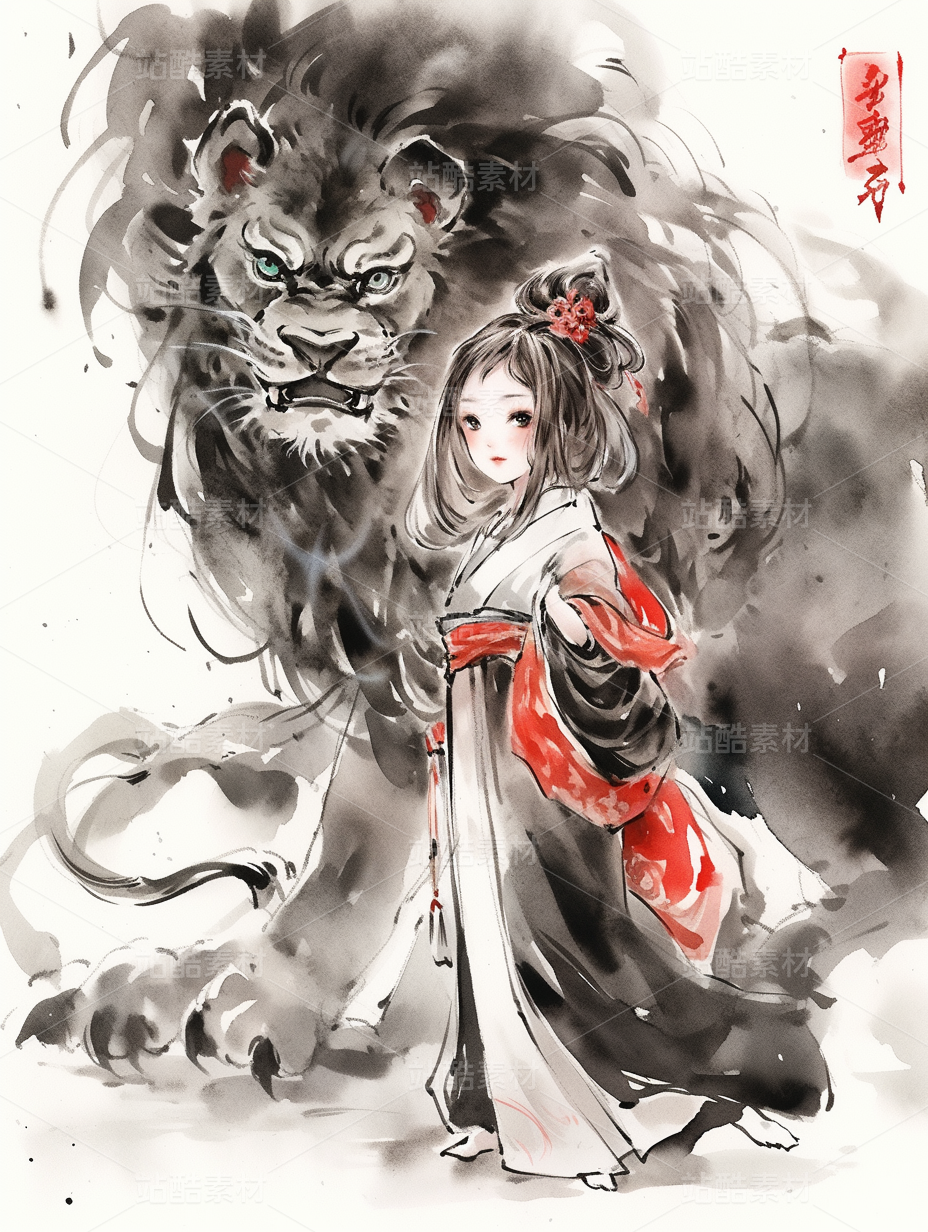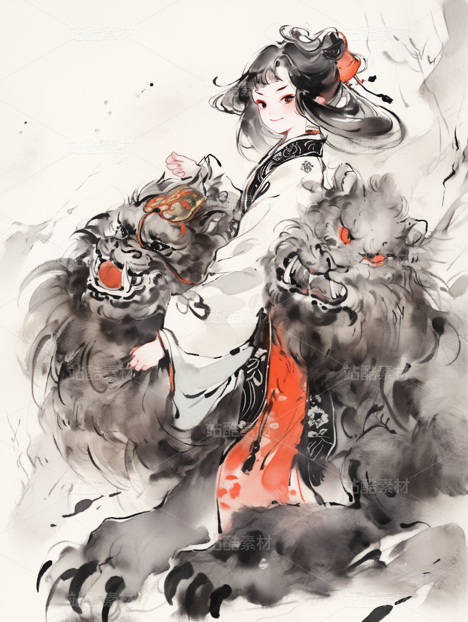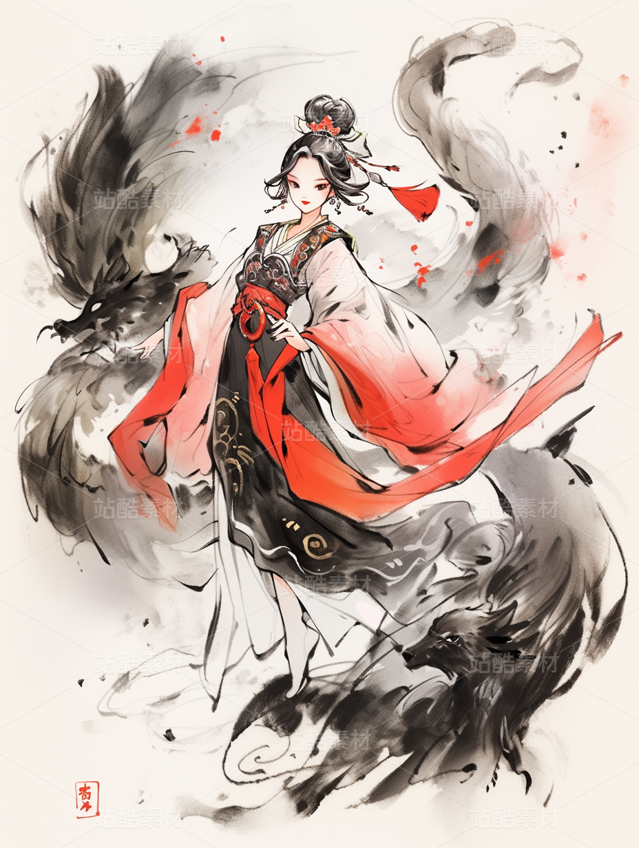 水墨中国风毛笔画国画图片工笔人物花鸟山水