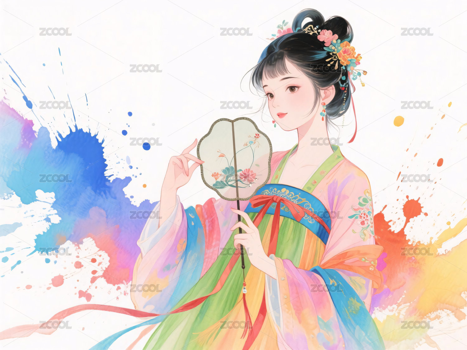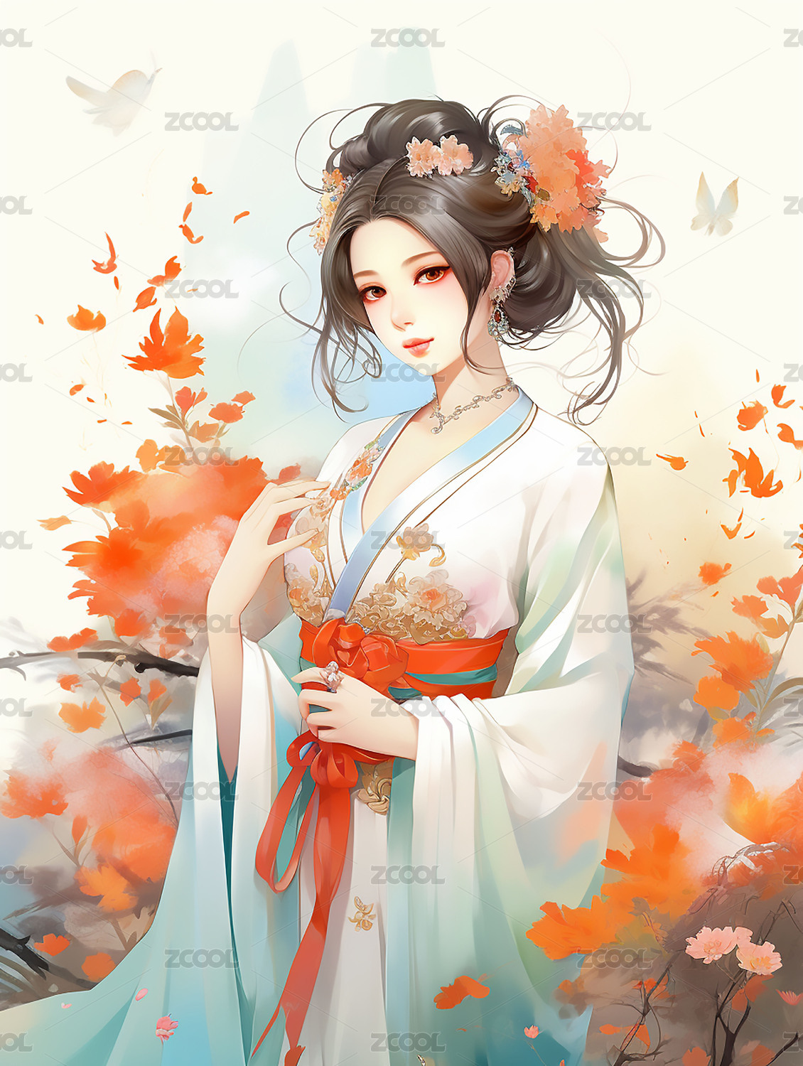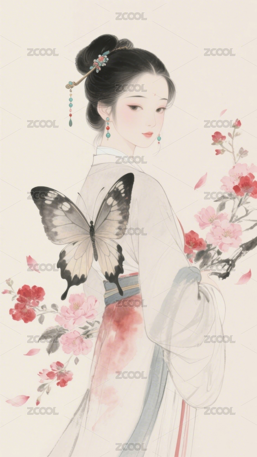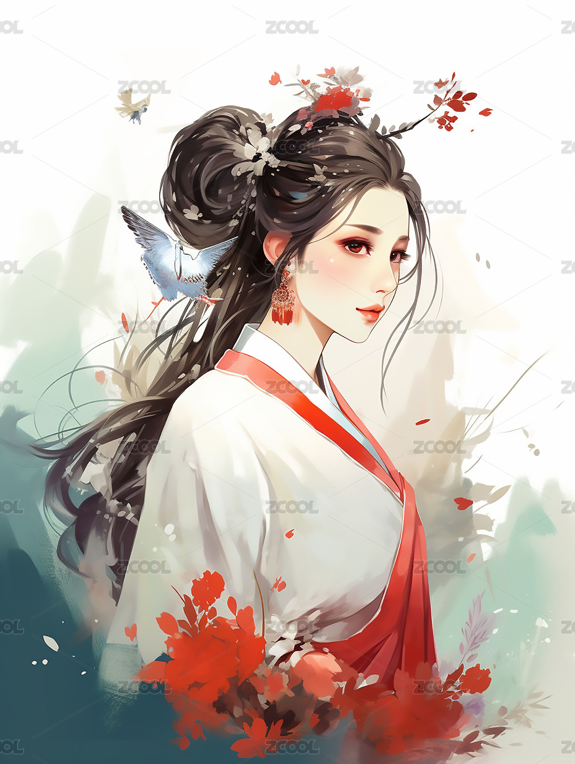 水墨中国风毛笔画国画图片工笔人物花鸟山水
