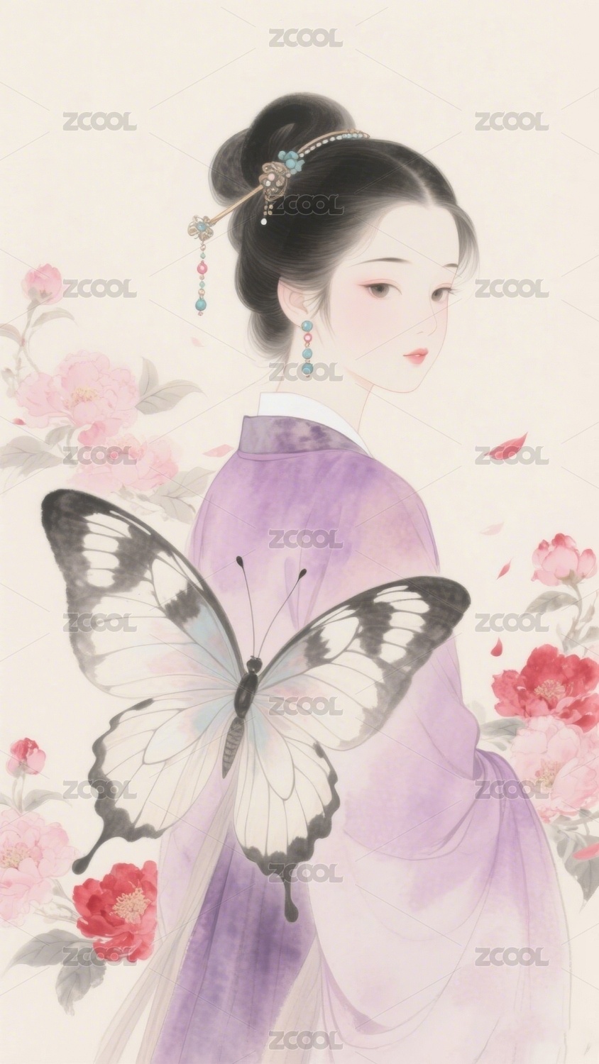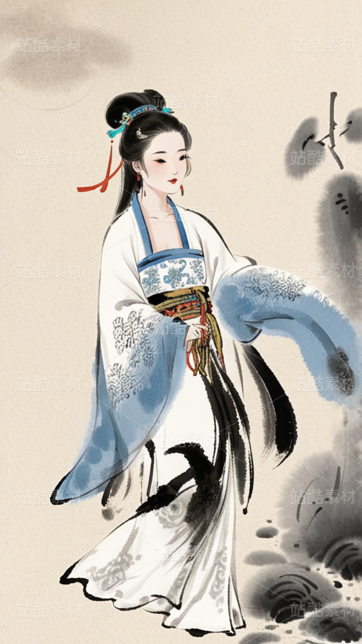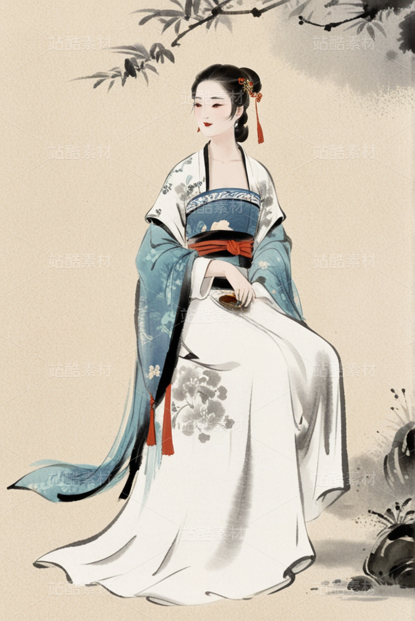 水墨中国风毛笔画国画图片工笔人物花鸟山水