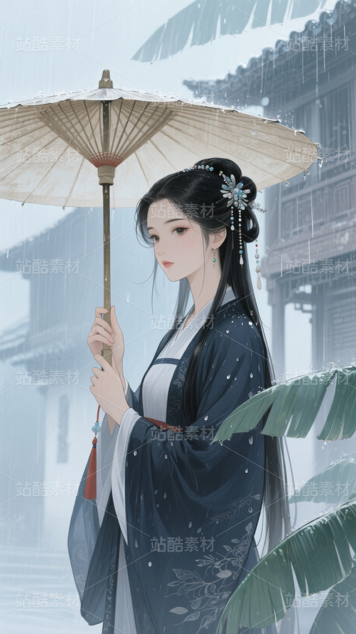 古风水墨画 少女头像