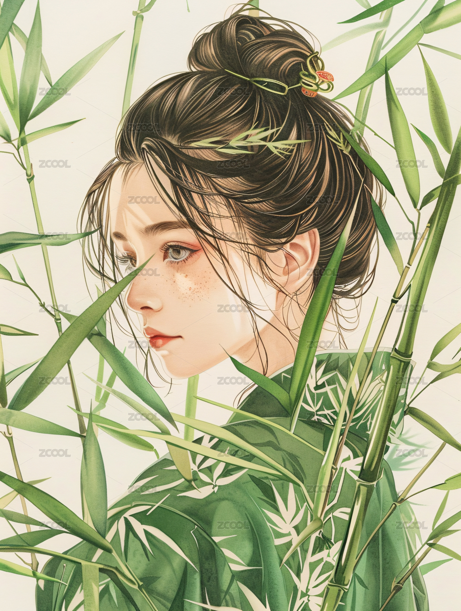 竹林古装女孩