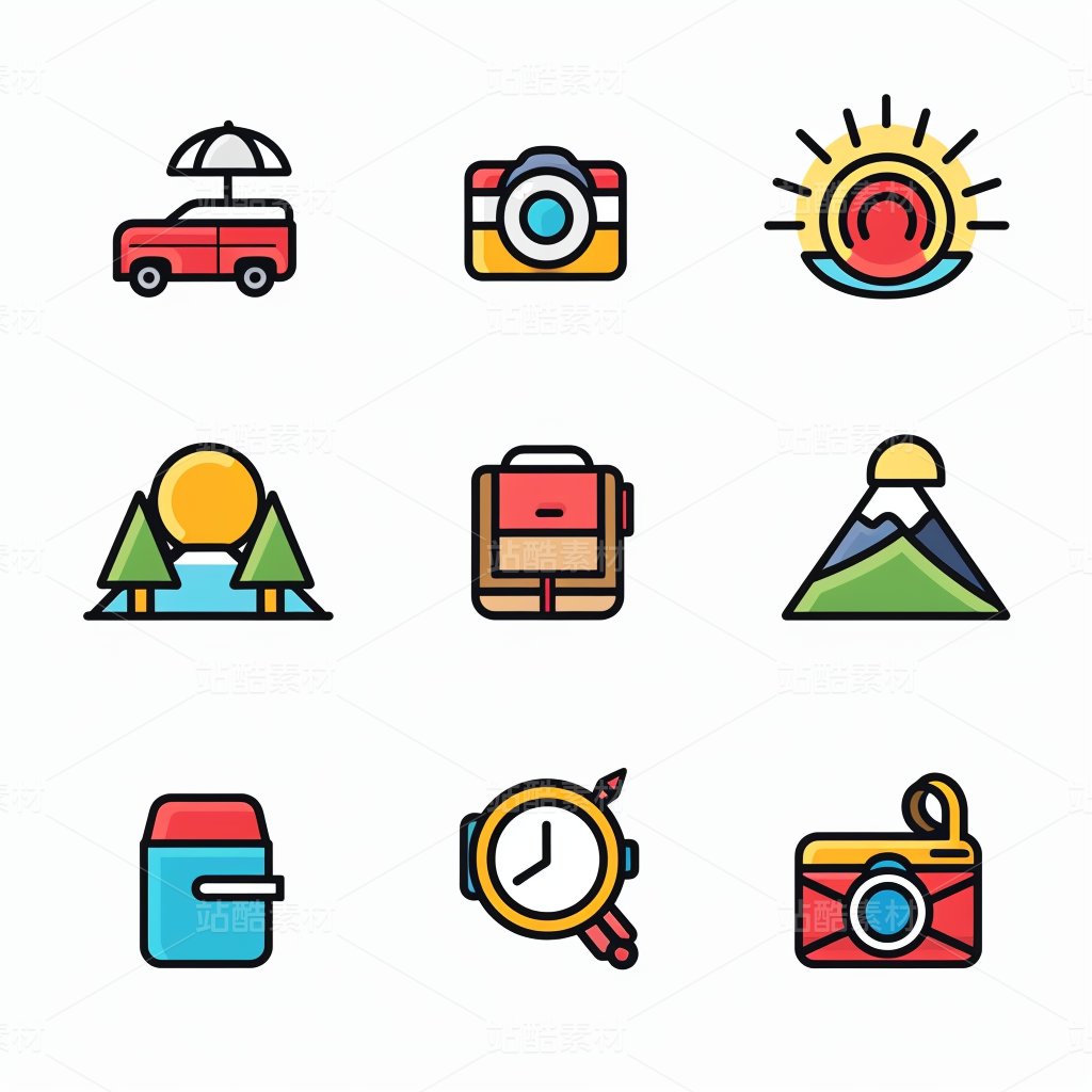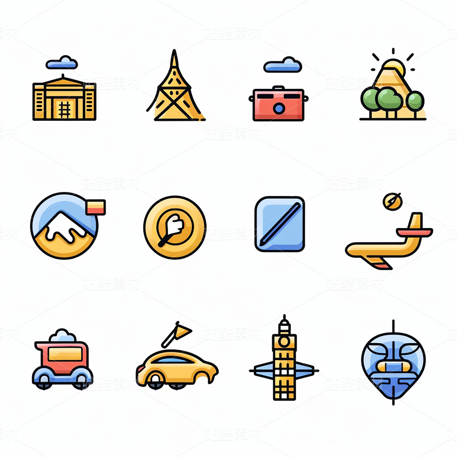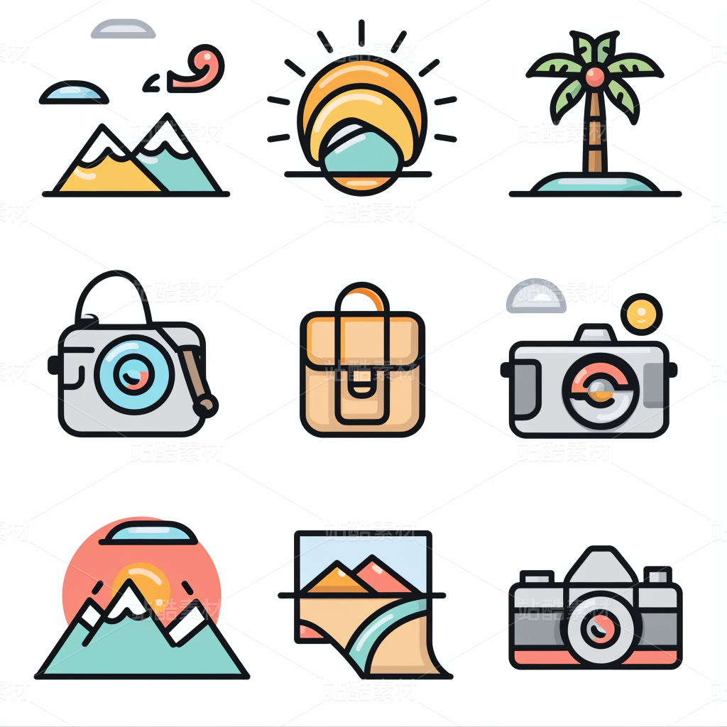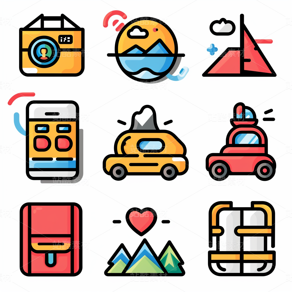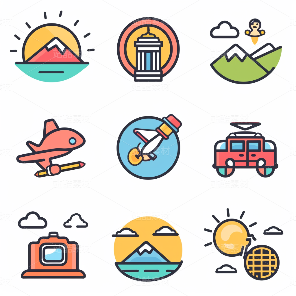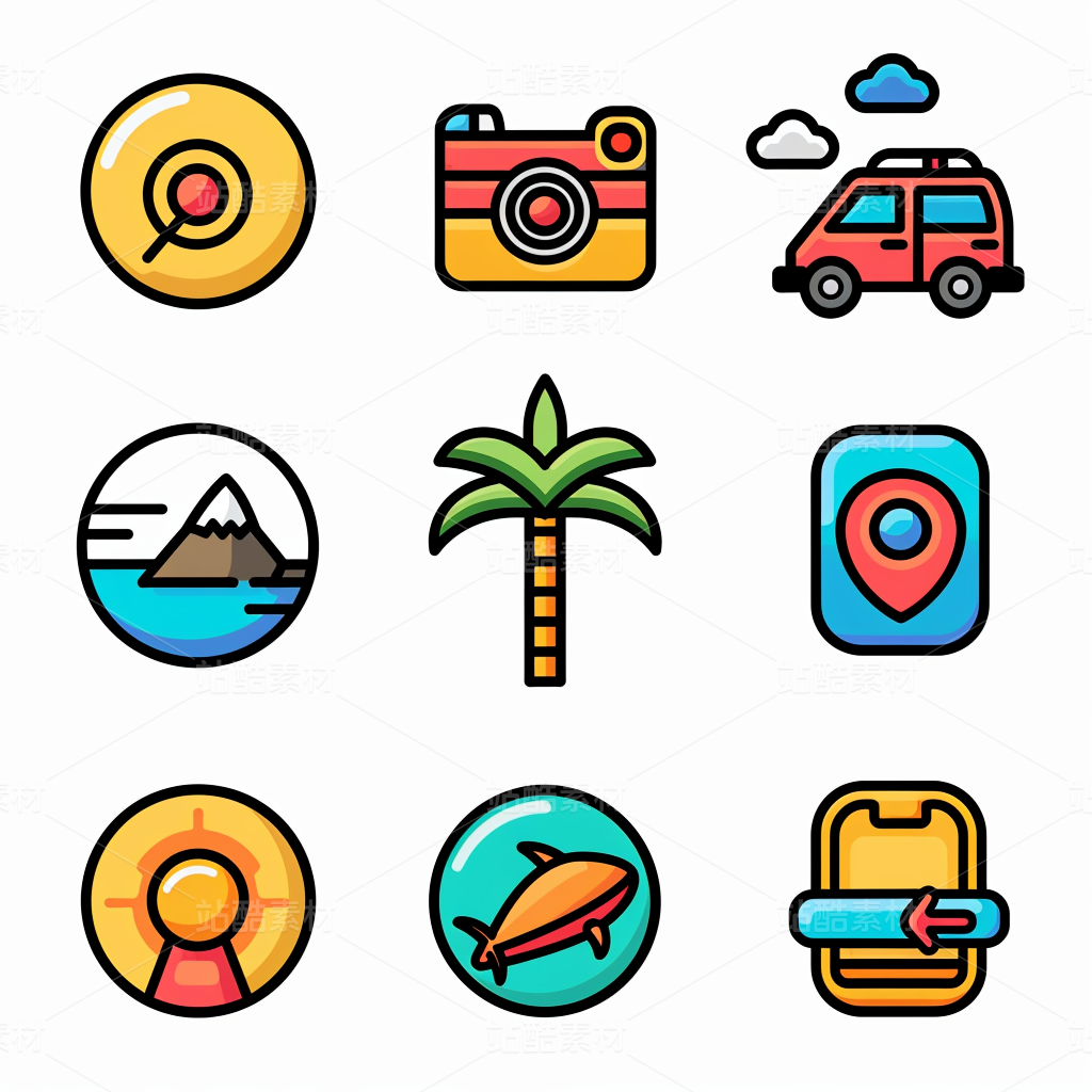 彩色图标ICON旅游办公社交媒体