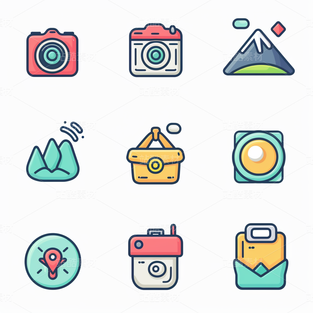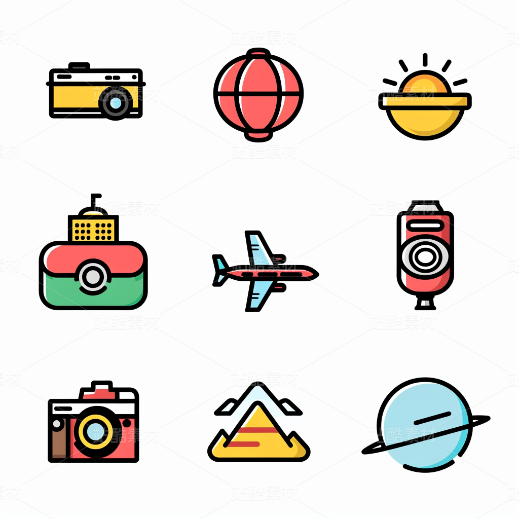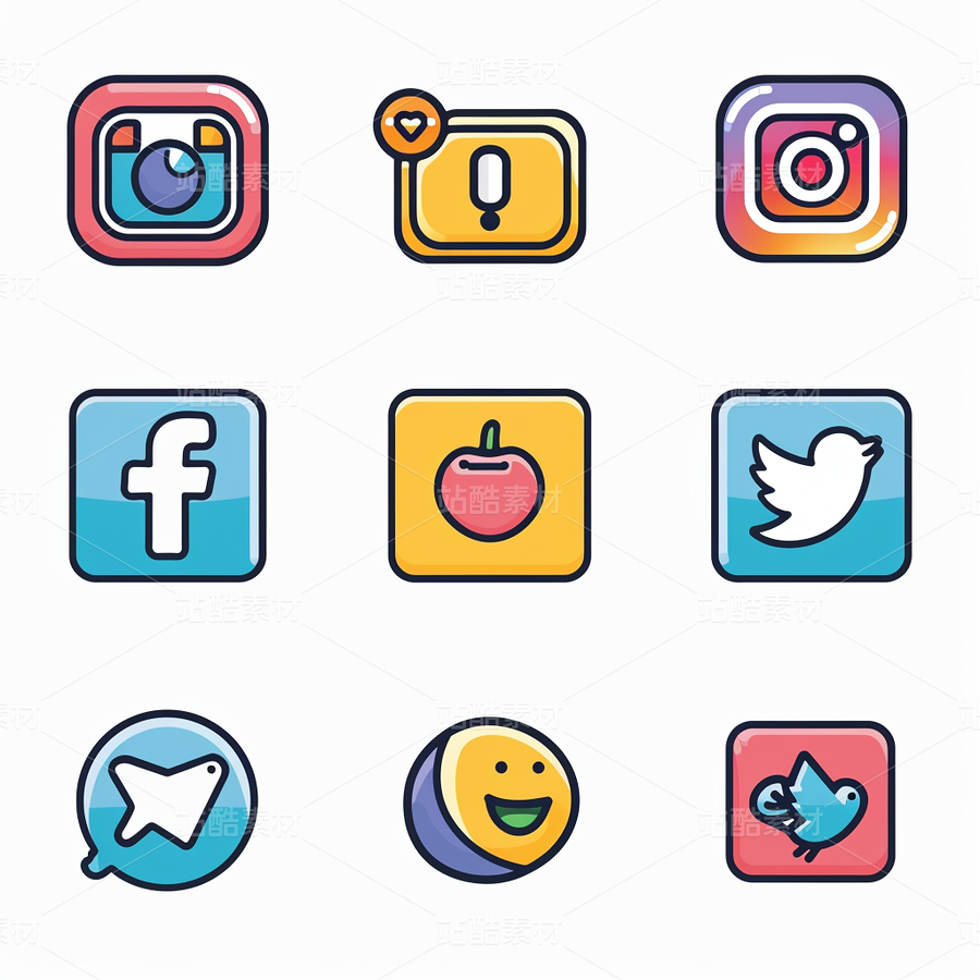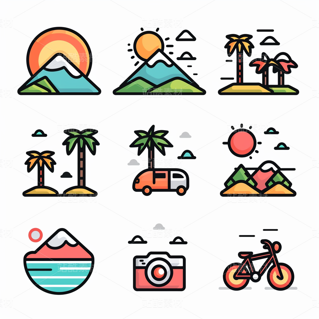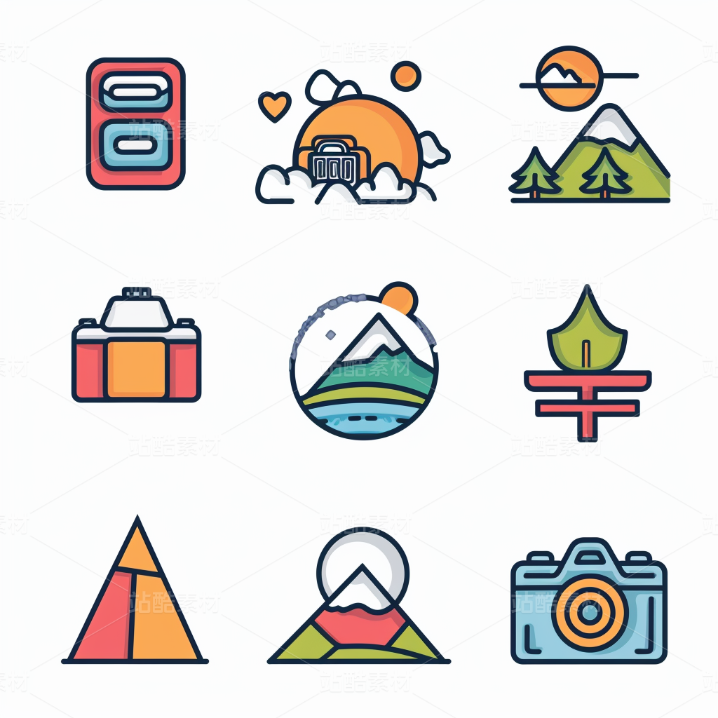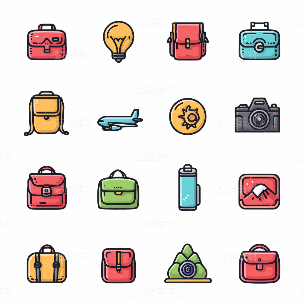 彩色图标ICON旅游办公社交媒体