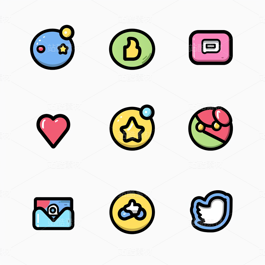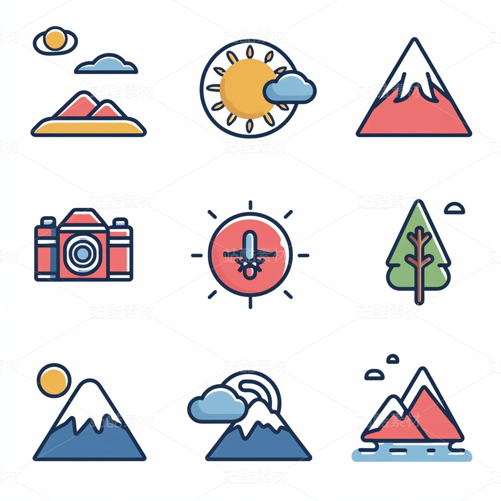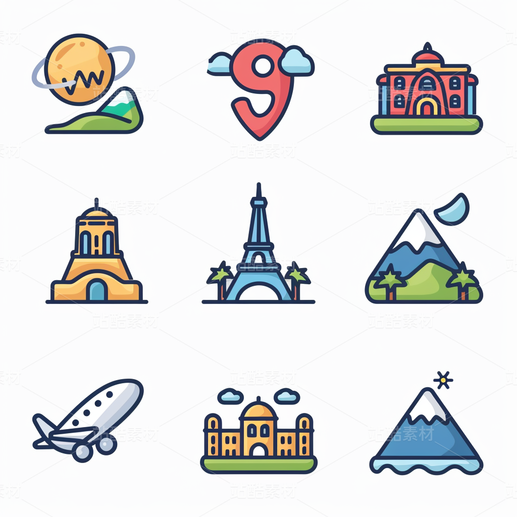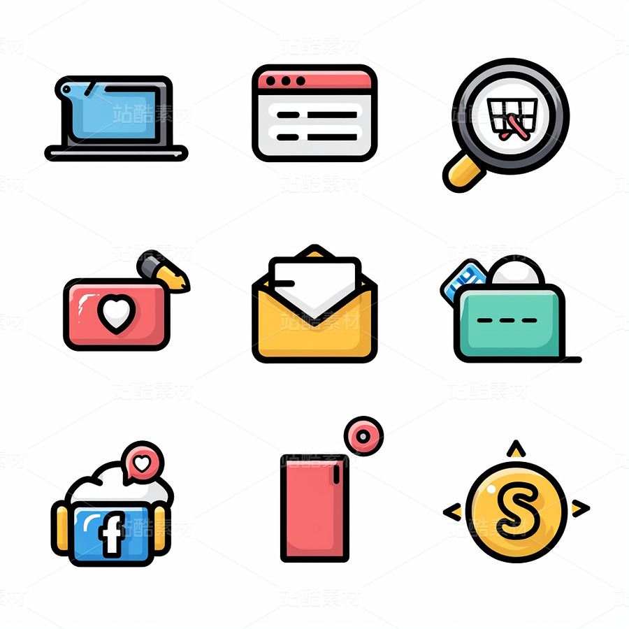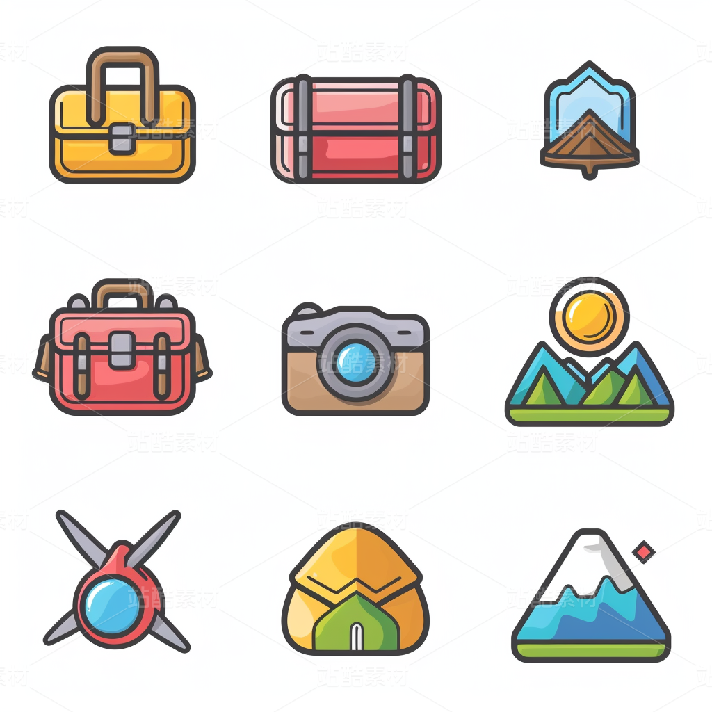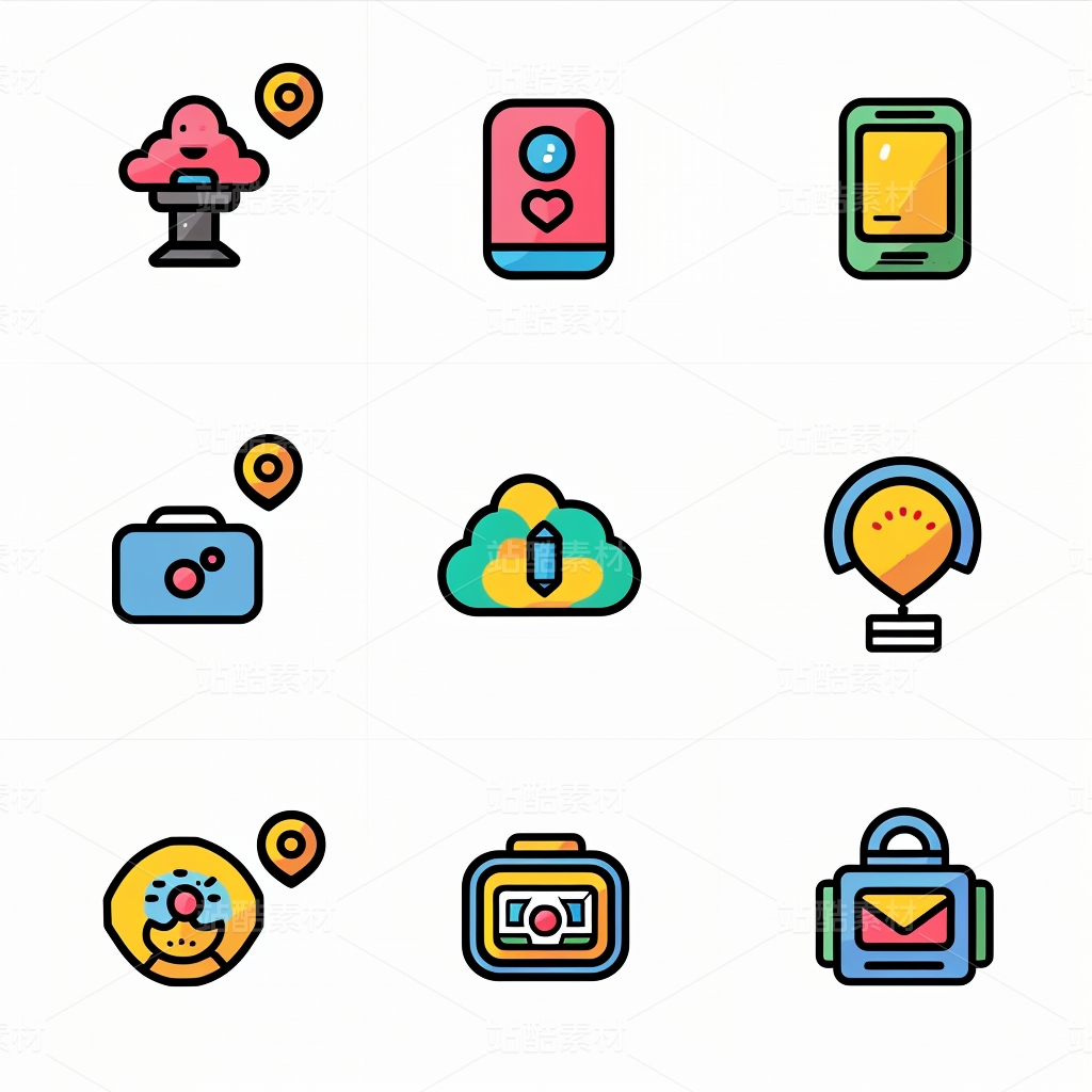 彩色图标ICON旅游办公社交媒体