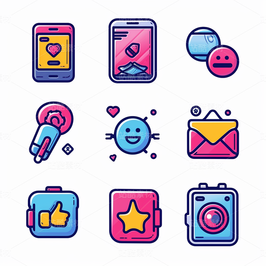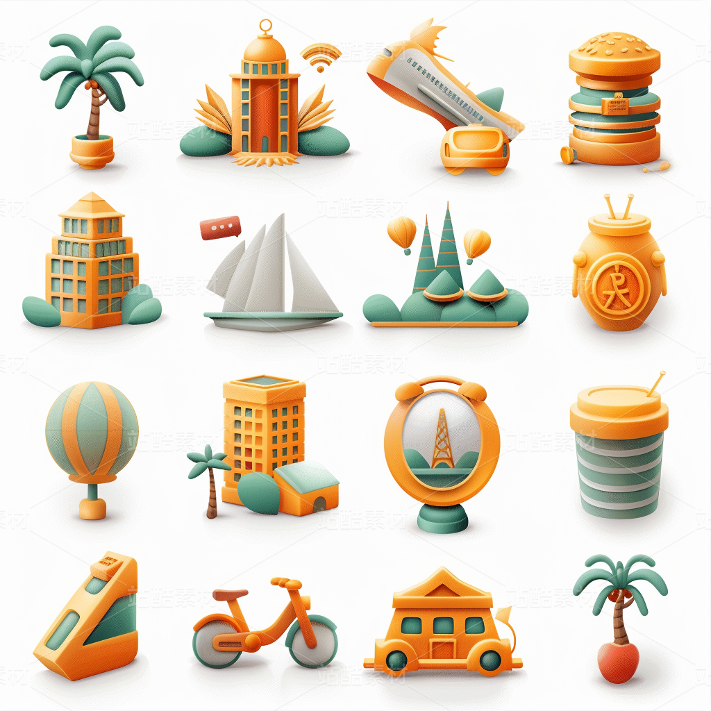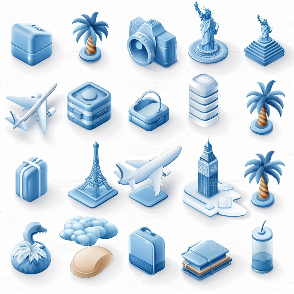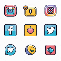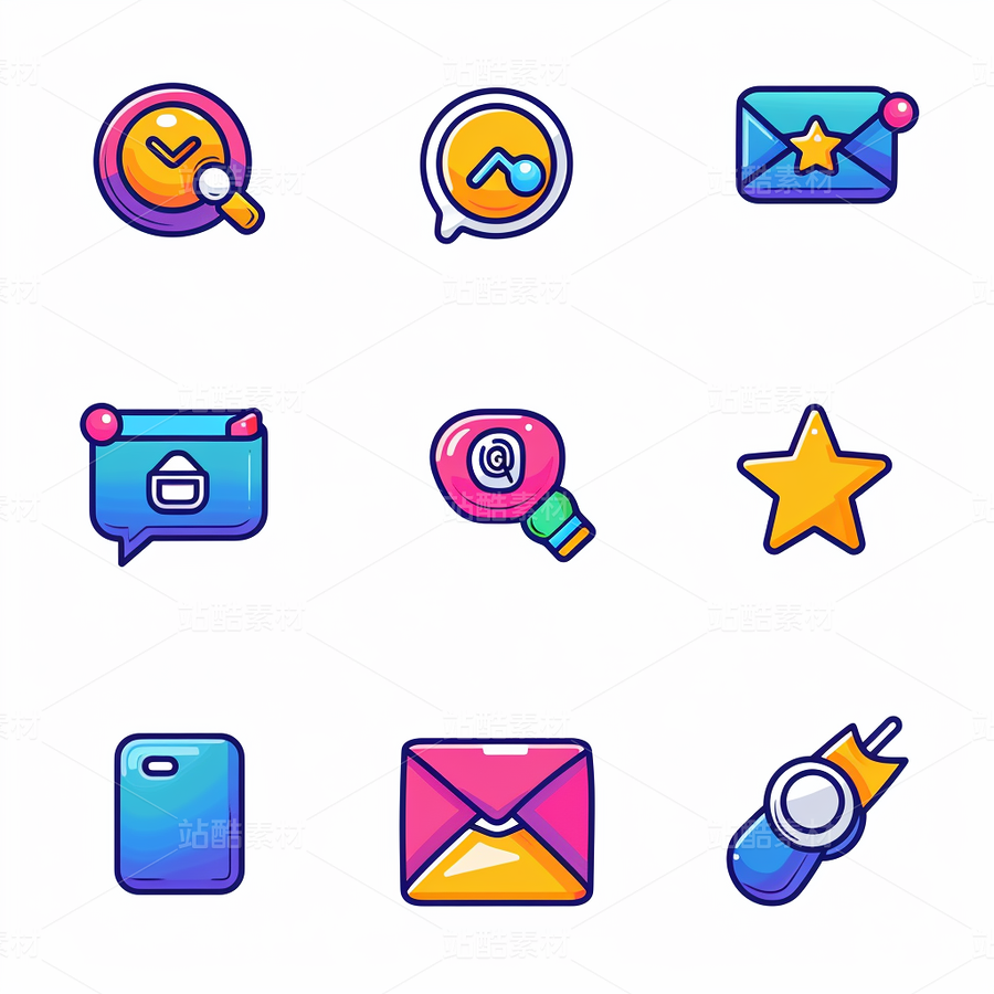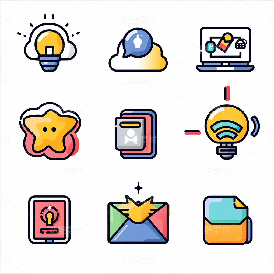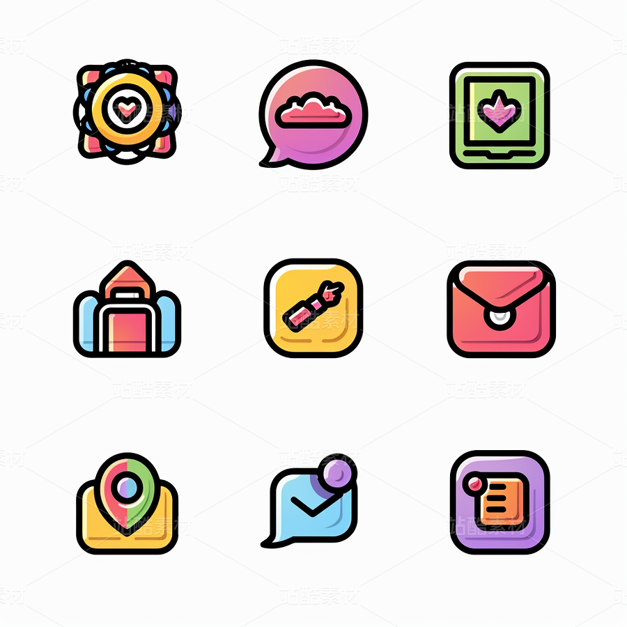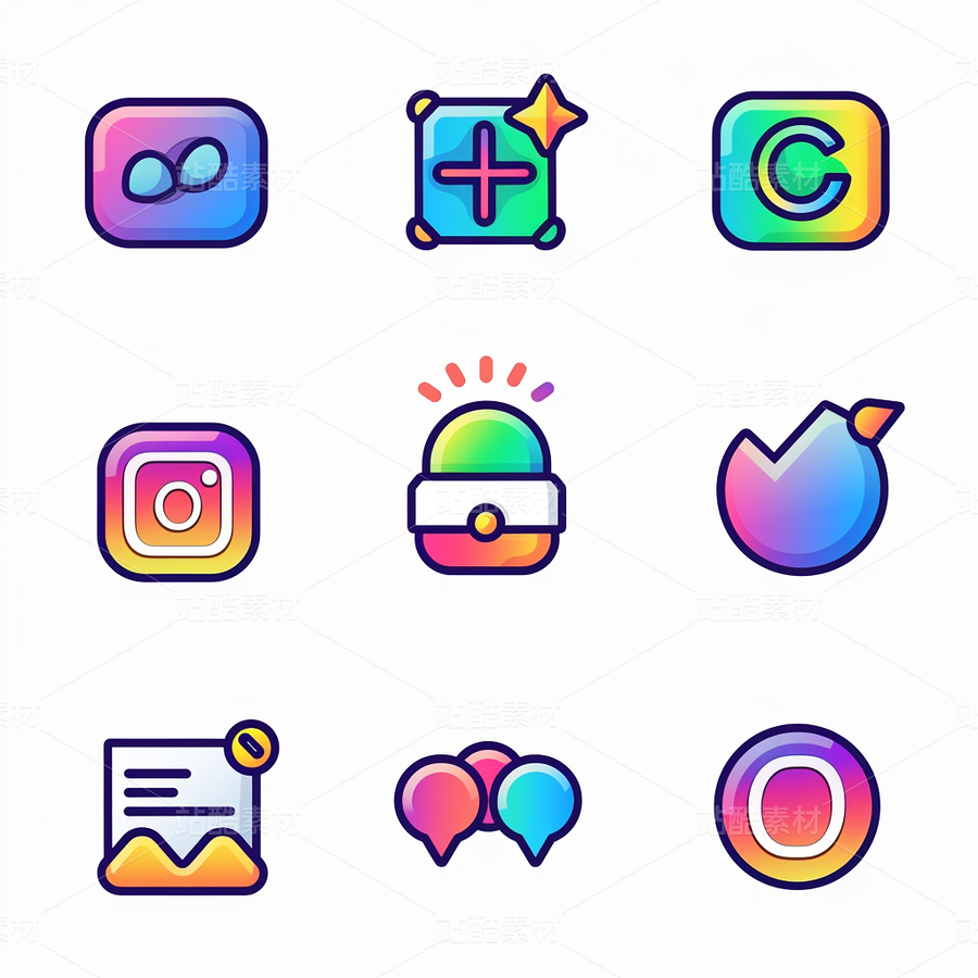 彩色图标ICON旅游办公社交媒体