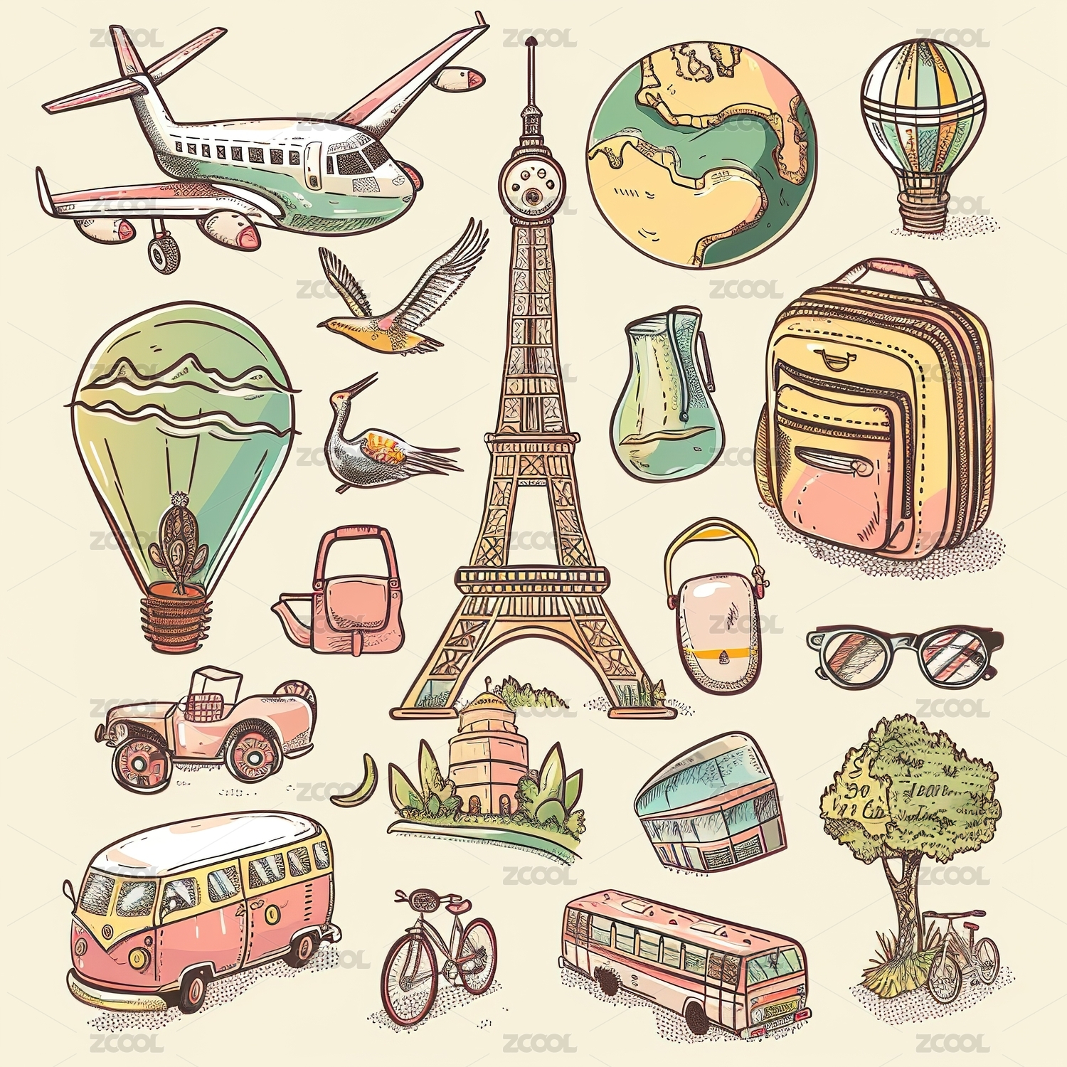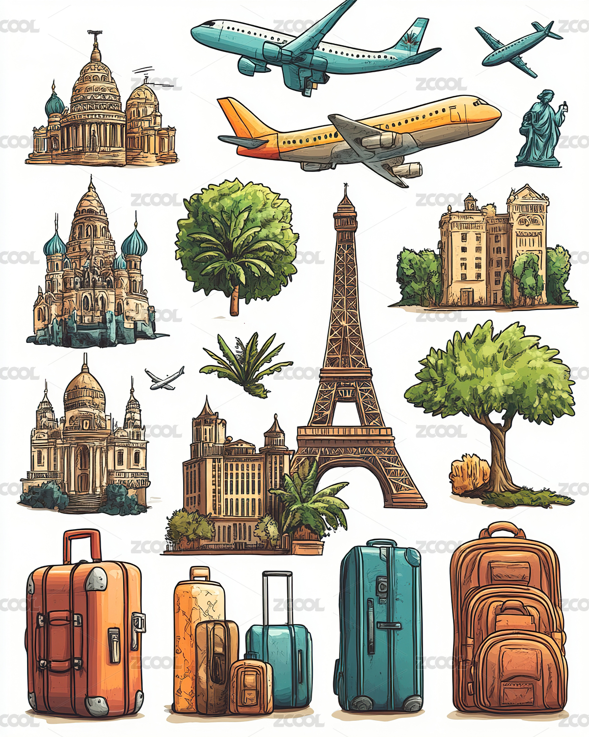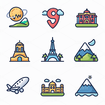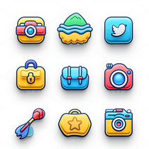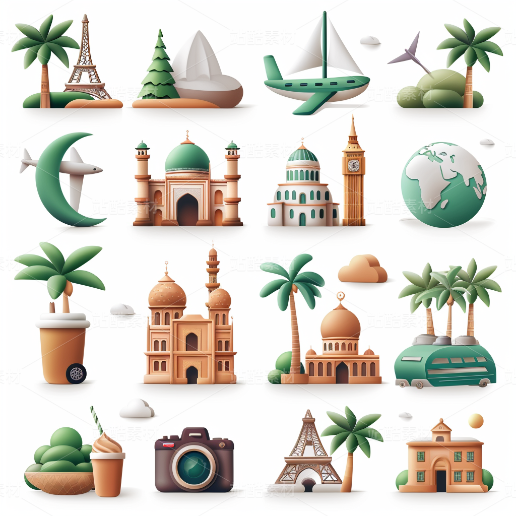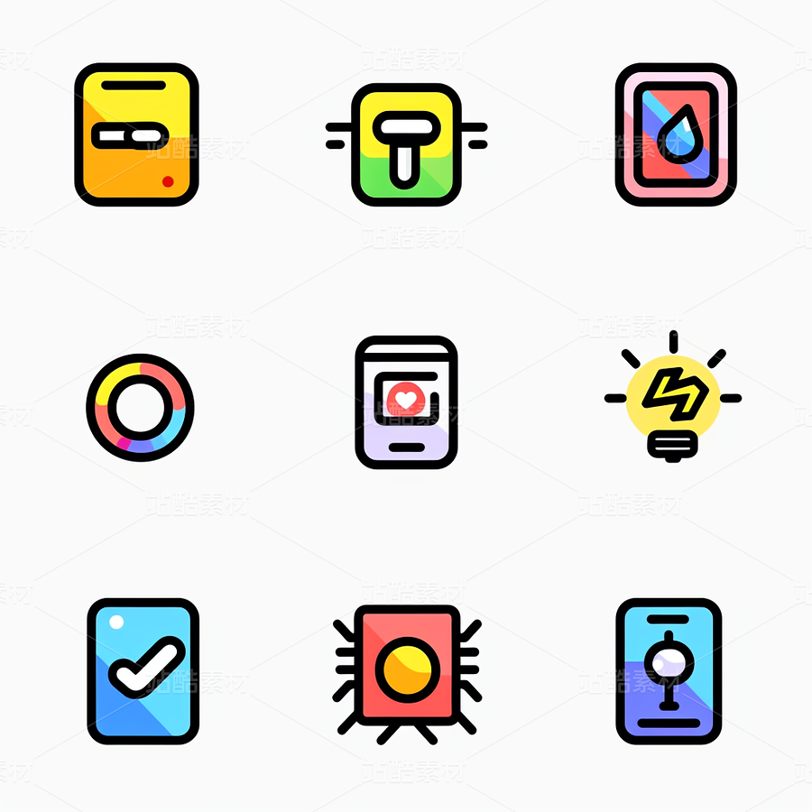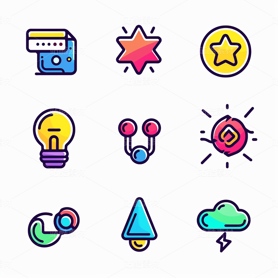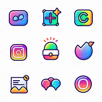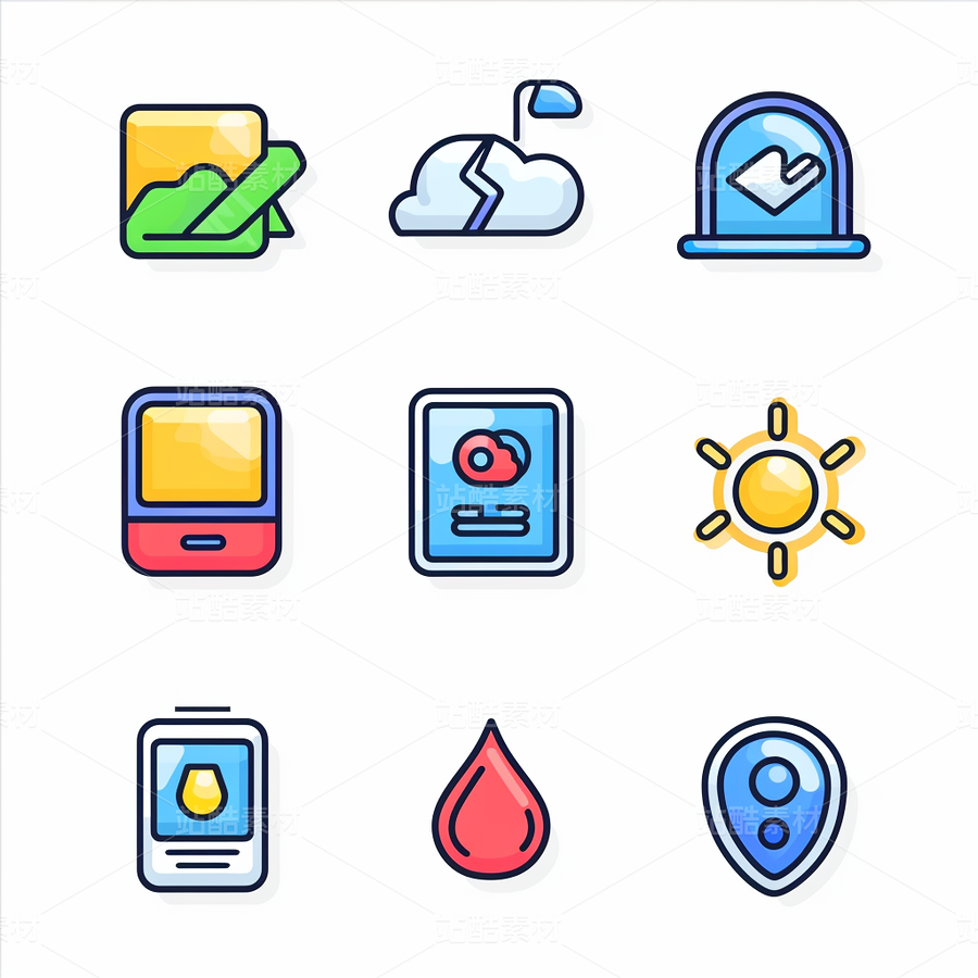 彩色图标ICON旅游办公社交媒体