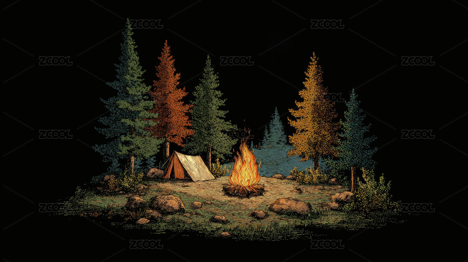 绿色黑色彩色水墨插画图标ICON自然森林树木