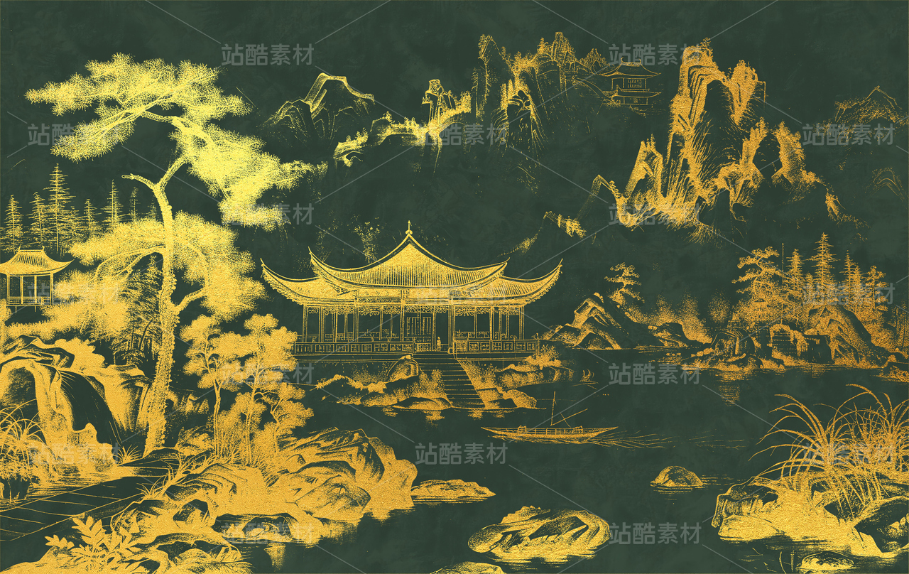 绿色黑色彩色水墨插画图标ICON自然森林树木