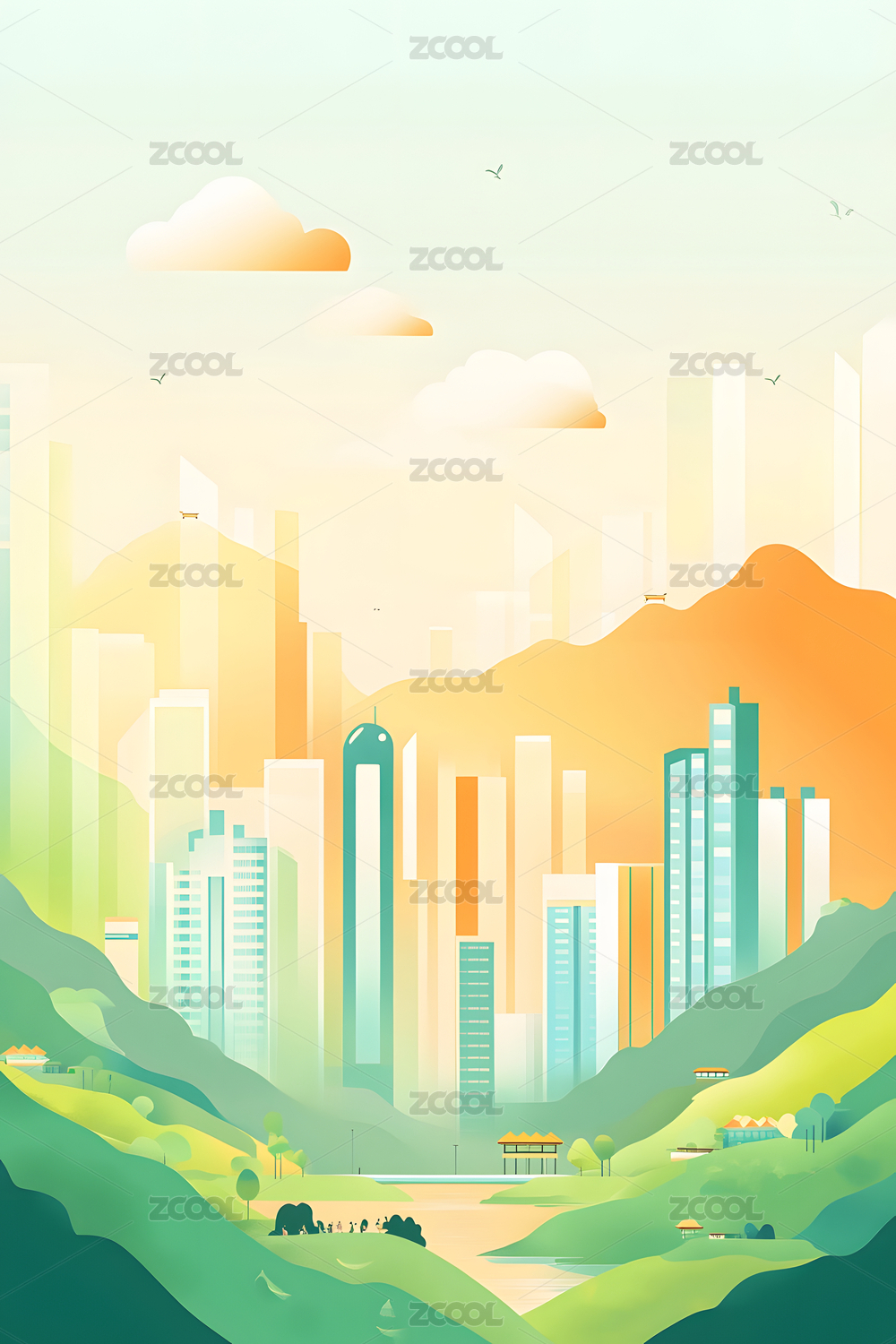 绿色黄色彩色城市能源自然天然种植插画人物家庭