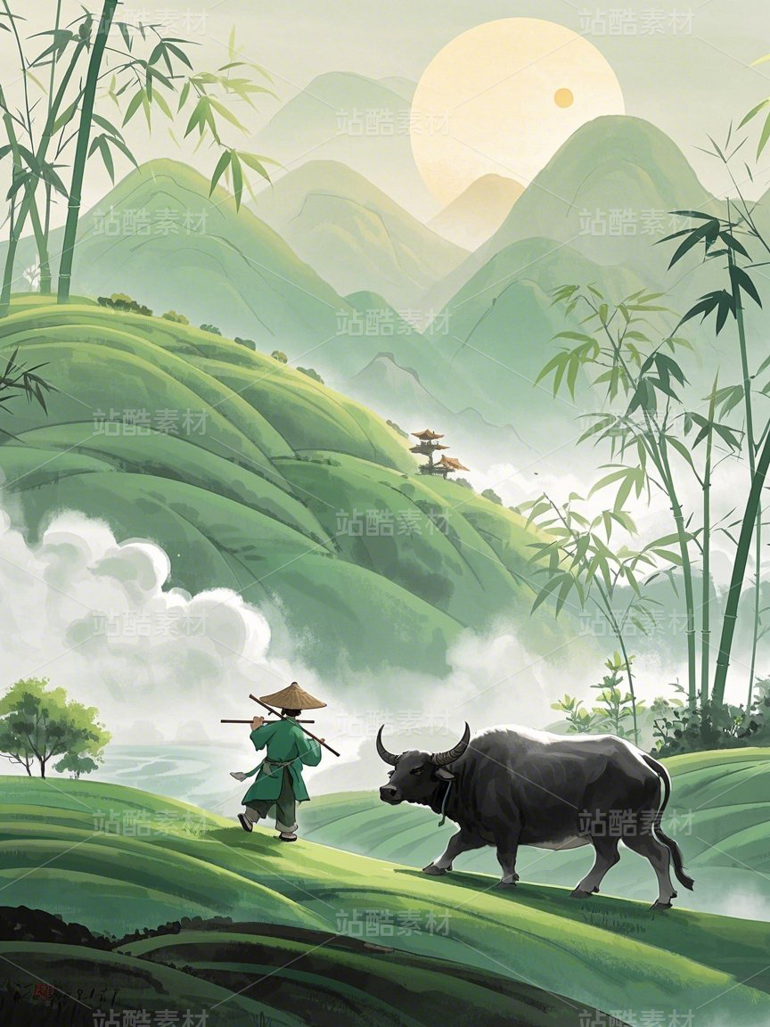 中国3d水墨画-牧童在山上放牛-(1)的副