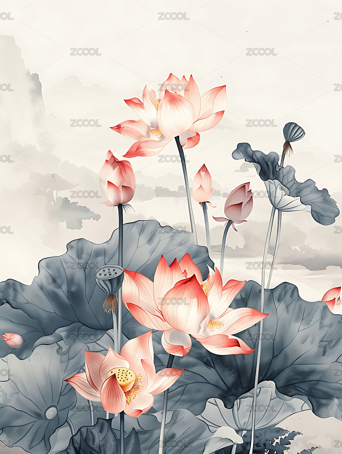 荷花国风水墨画