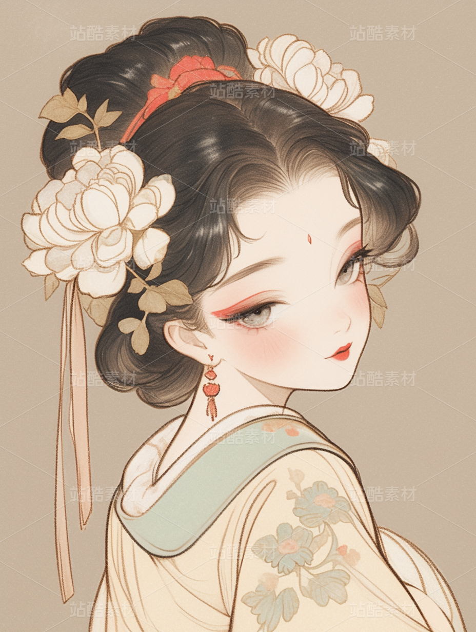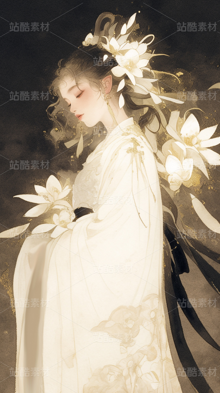 水墨中国风毛笔画国画图片工笔人物花鸟山水