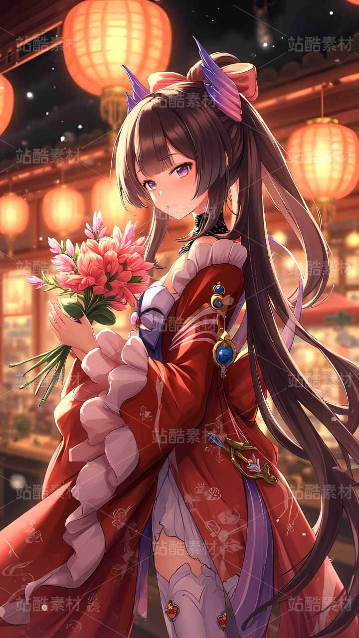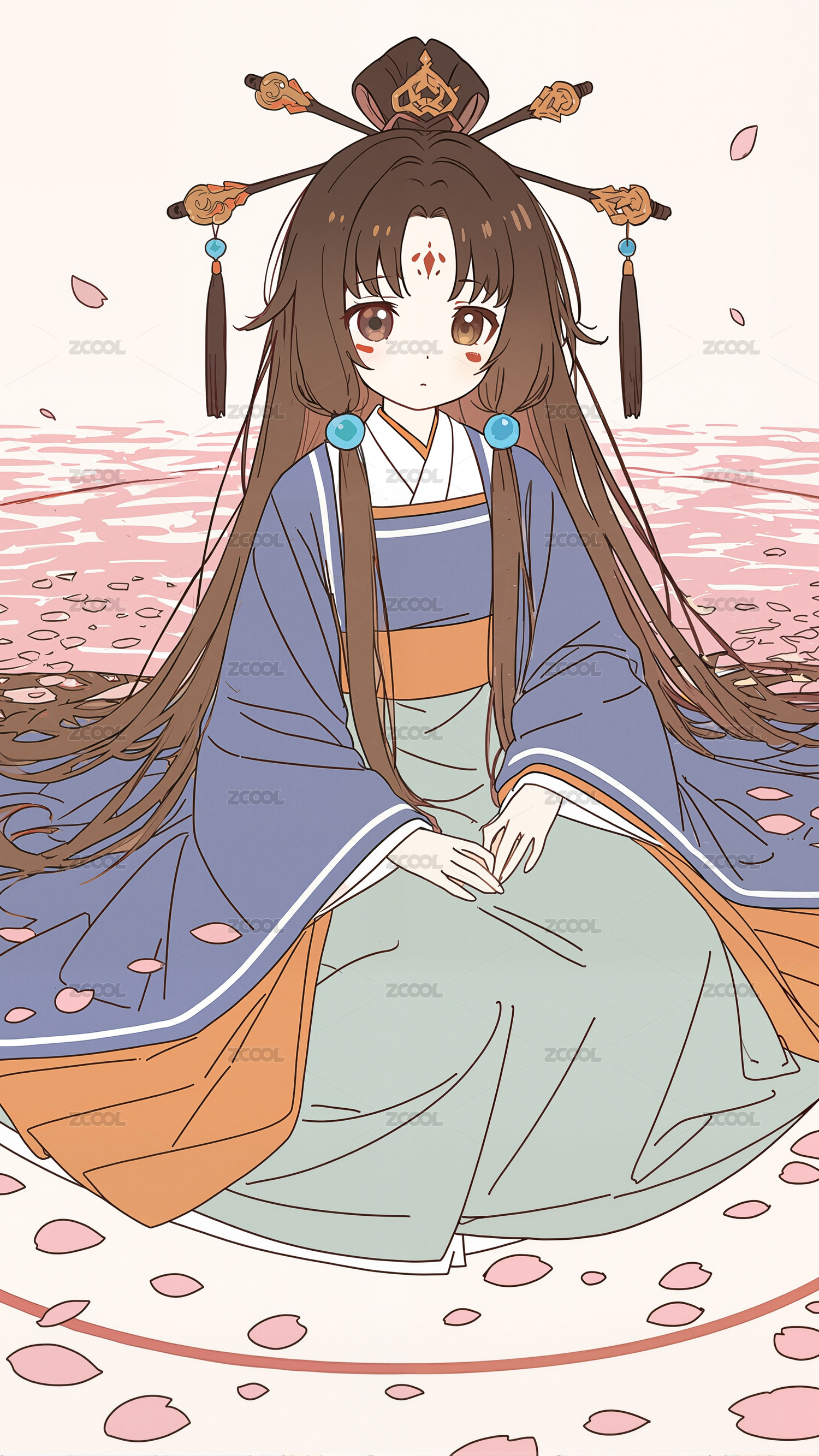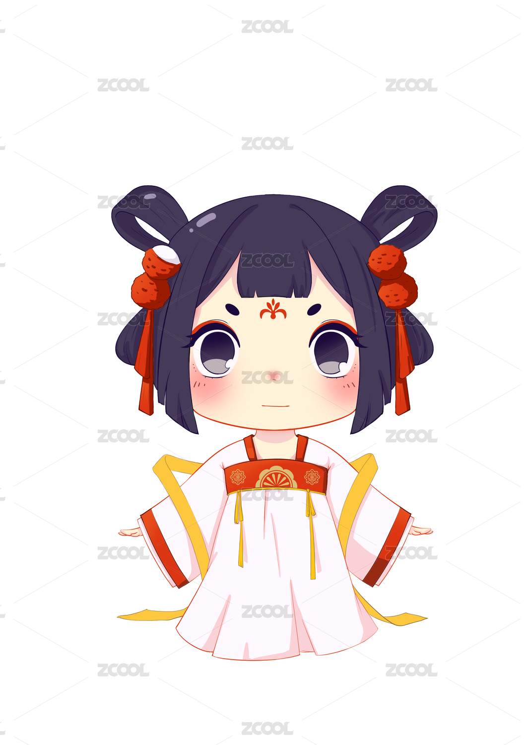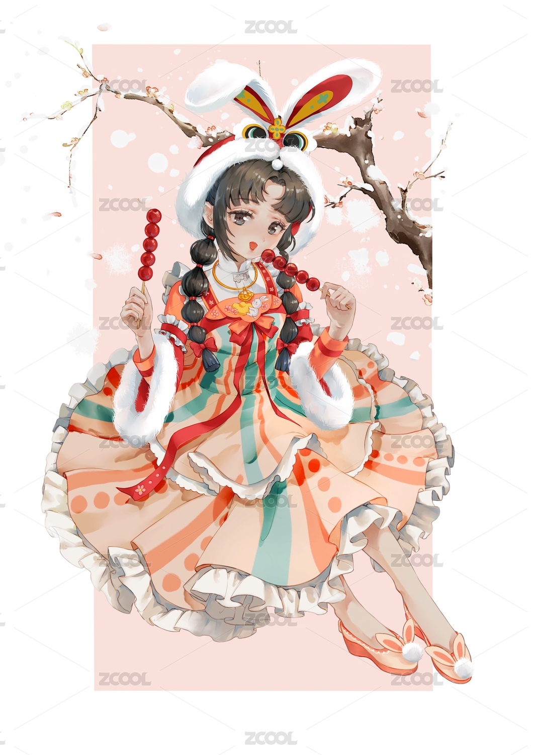 喜庆冬天戴兔子帽子穿着汉服的古装女孩