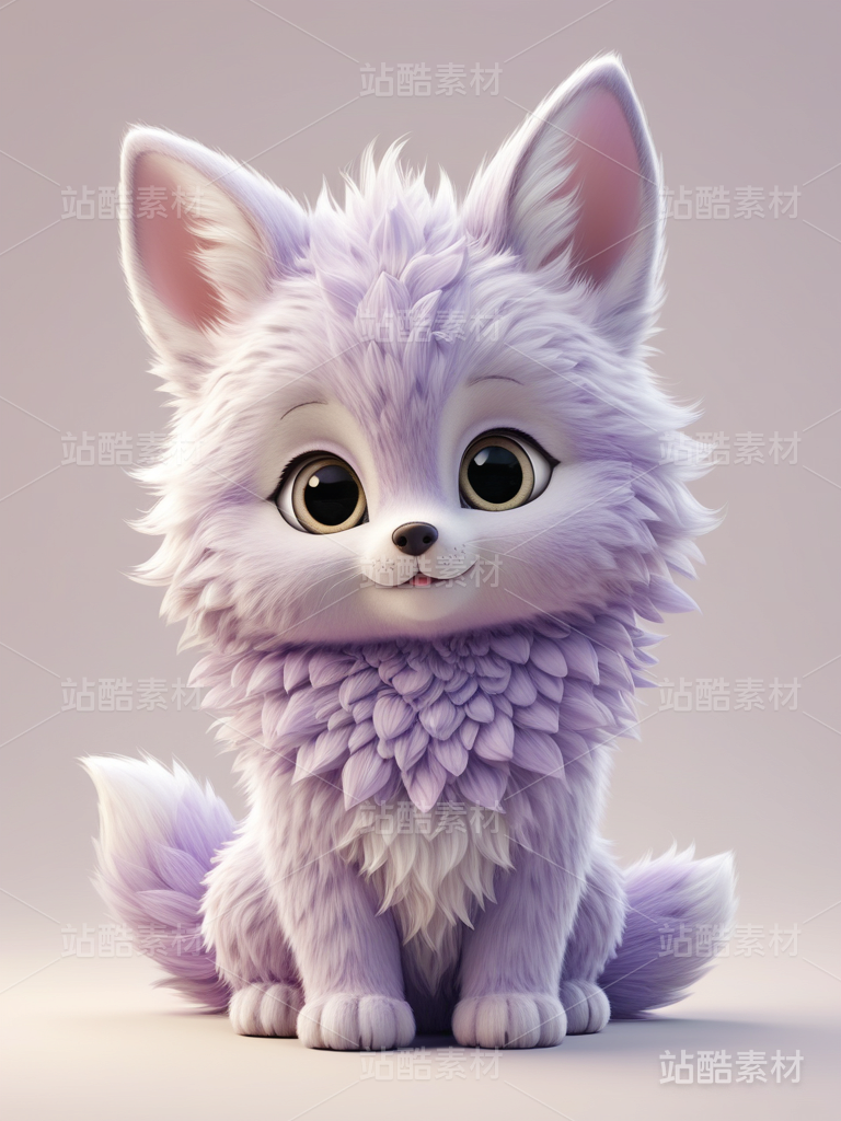 彩色3D卡通可爱兔子和小猫宠物动物梦幻