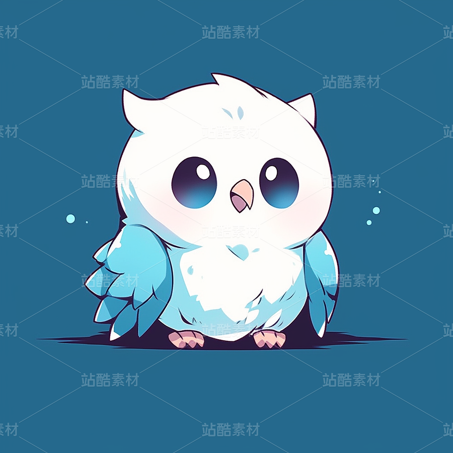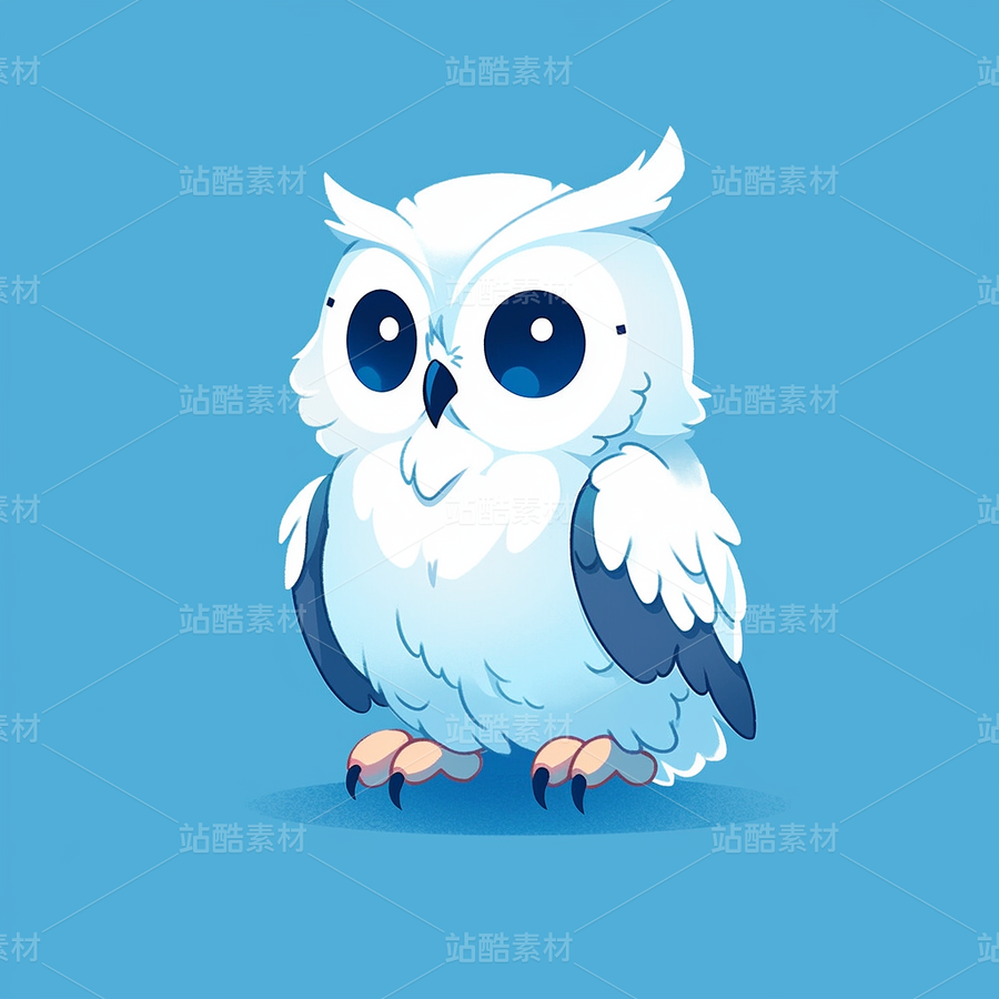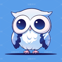 彩色蓝色橙色可爱猫猫猫头鹰宠物插画