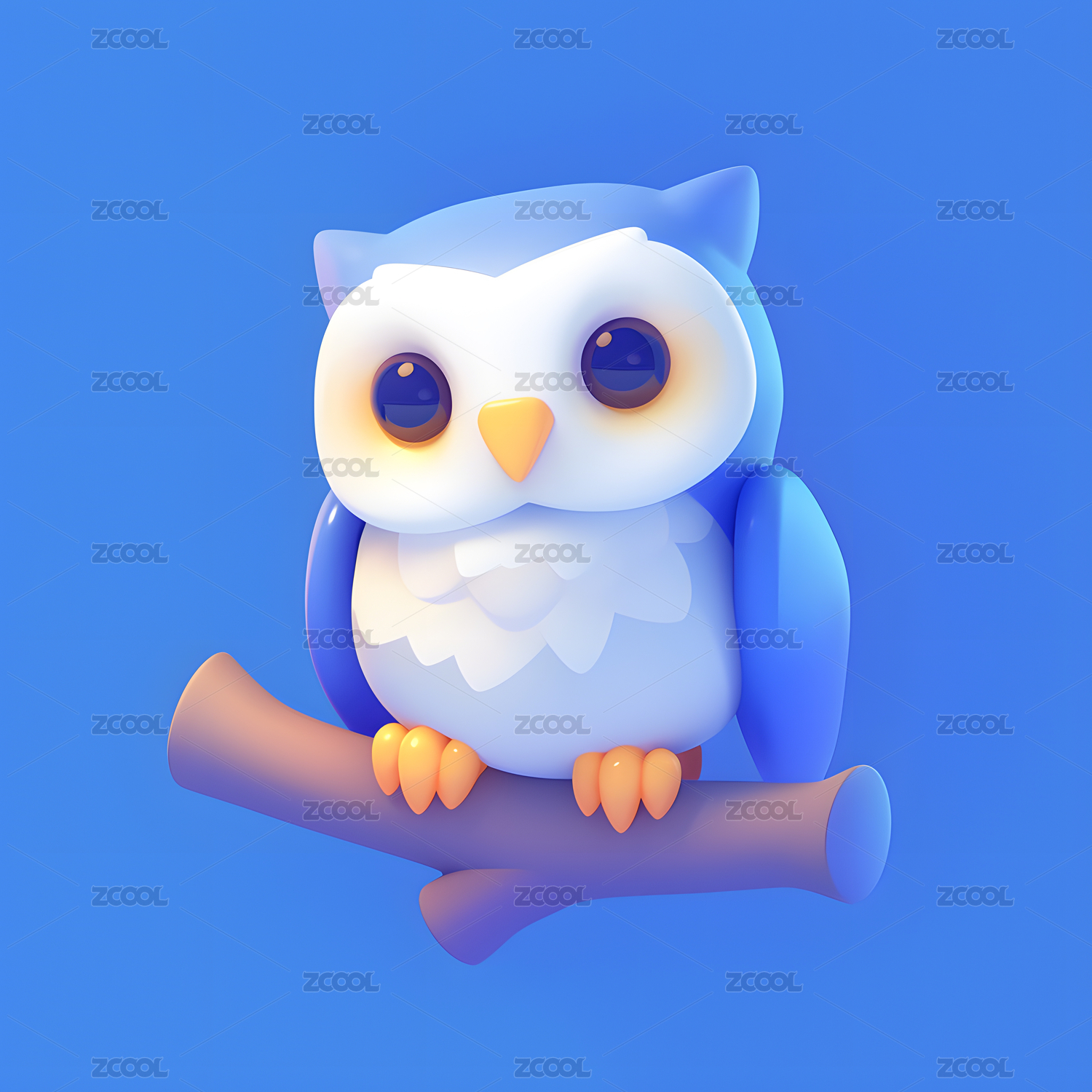 彩色蓝色橙色可爱猫猫猫头鹰宠物插画