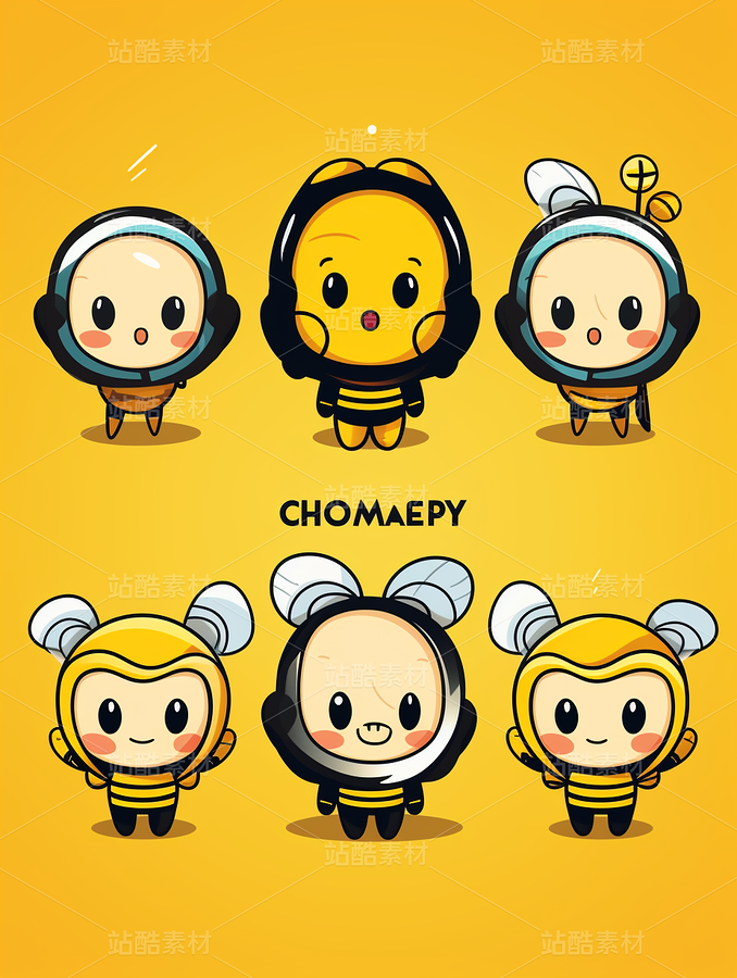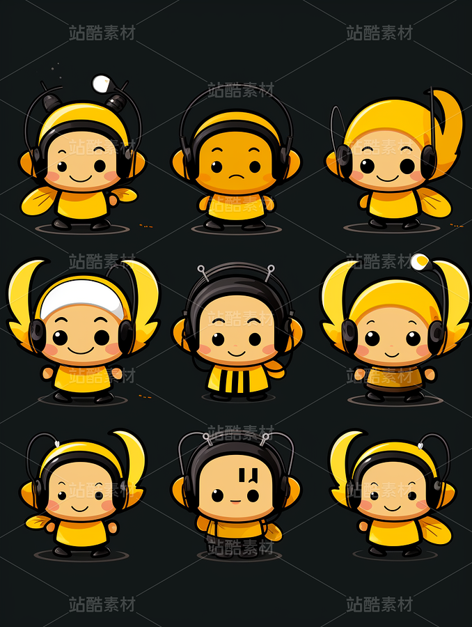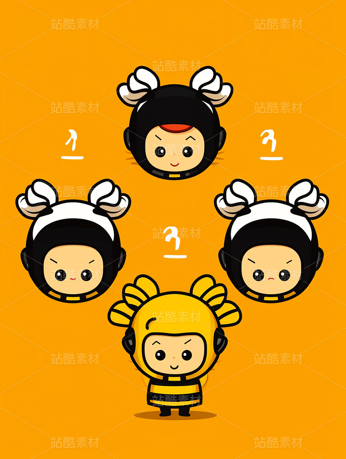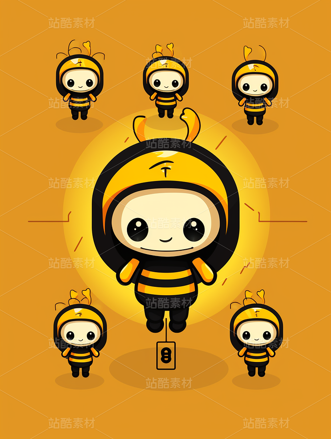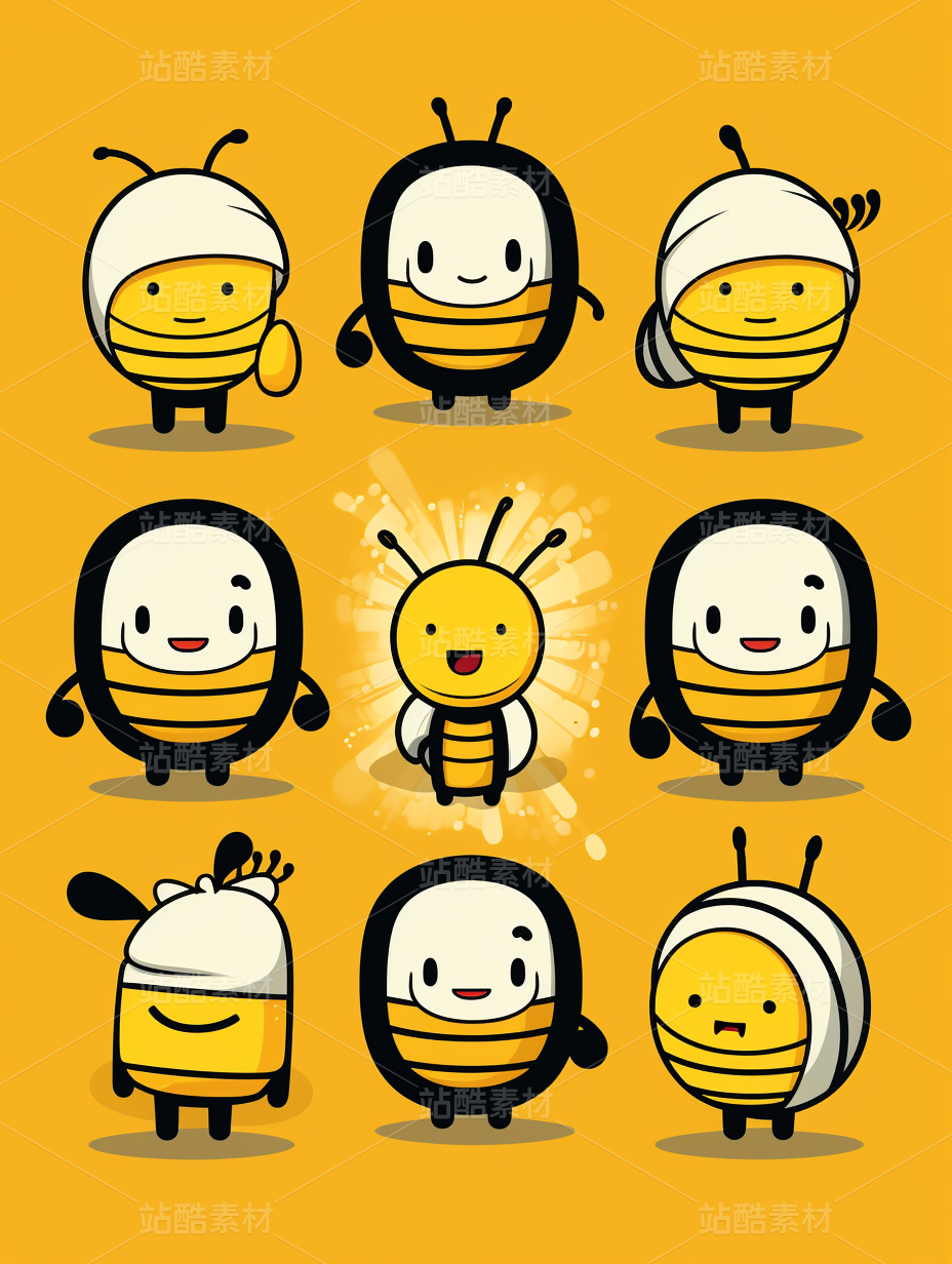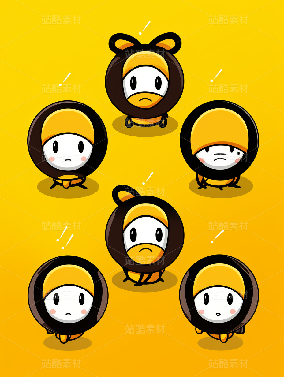橙色黄色小蜜蜂图标ICON可爱勤劳表情包