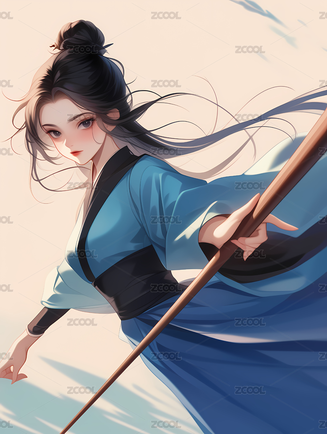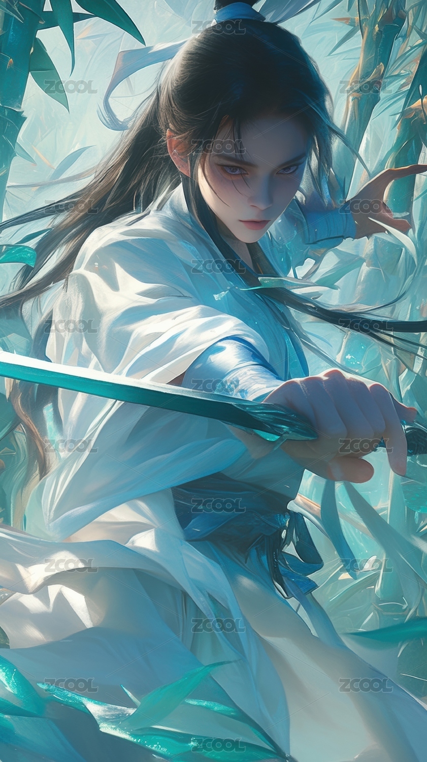 中国风古风素衣仗剑美女侠女侠客半身插画
