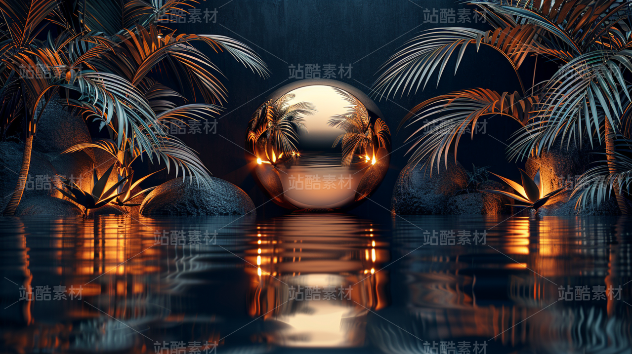 金色绿色黑色自然海边夕阳星球未来高端高级感