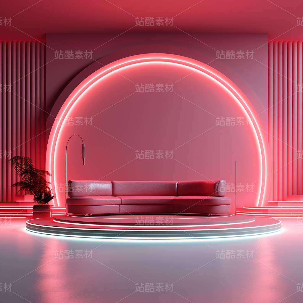 彩色3D舞台荧光质感奢侈几何空间艺术