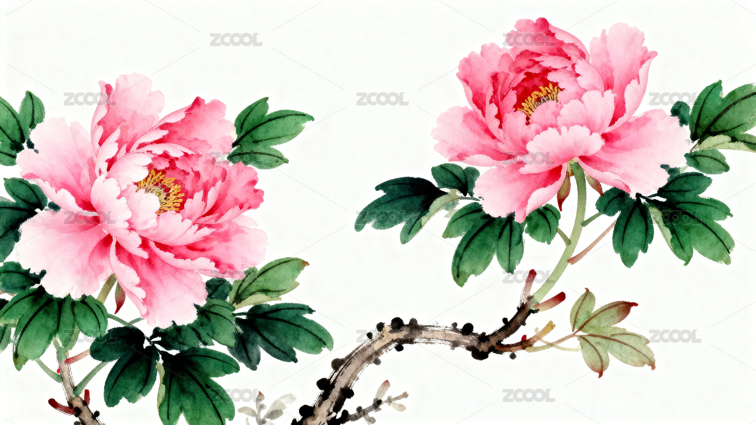 水墨牡丹花枝