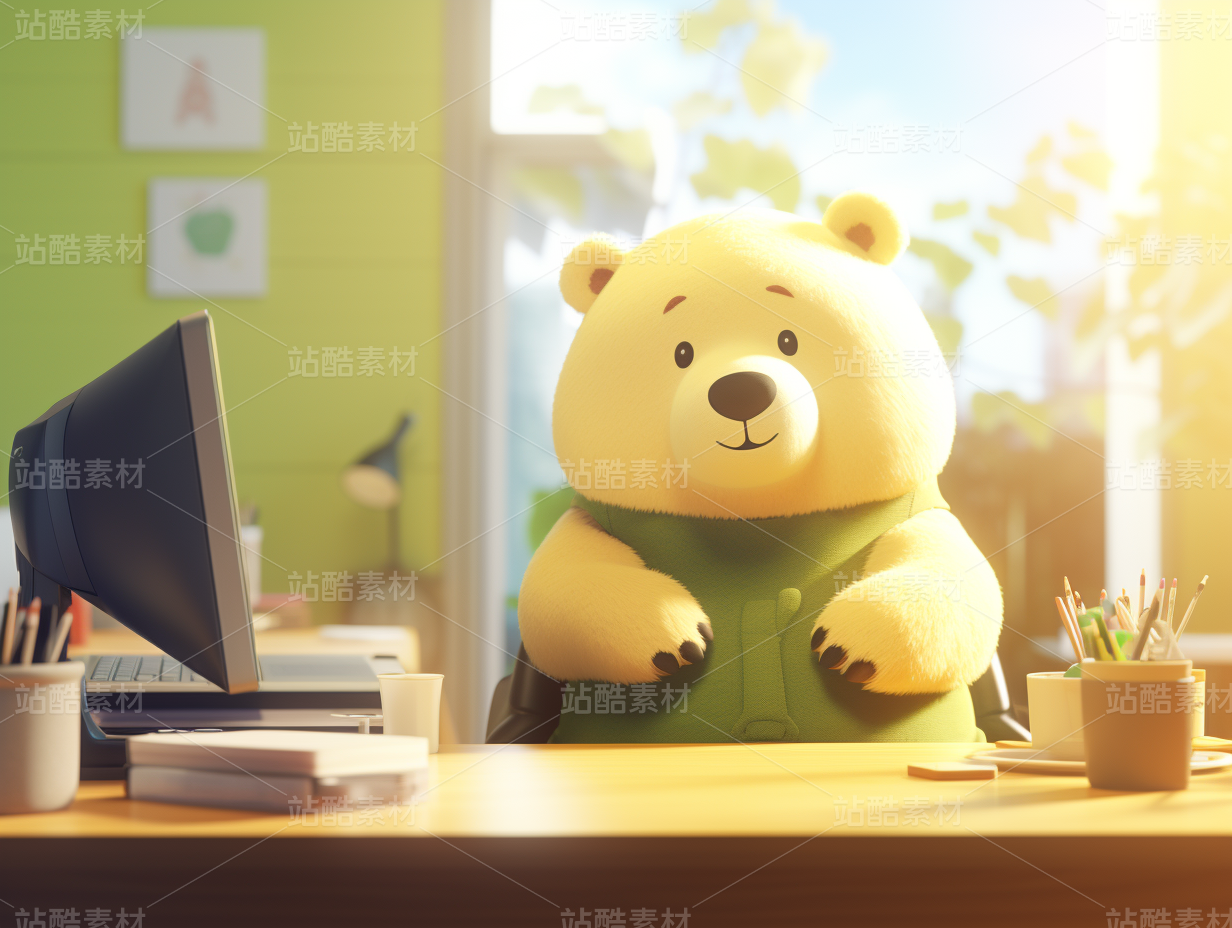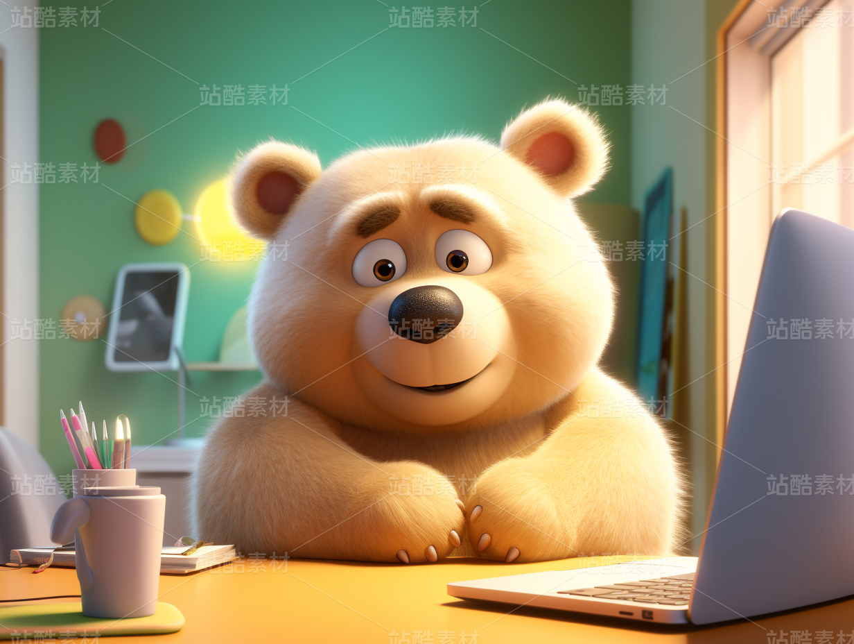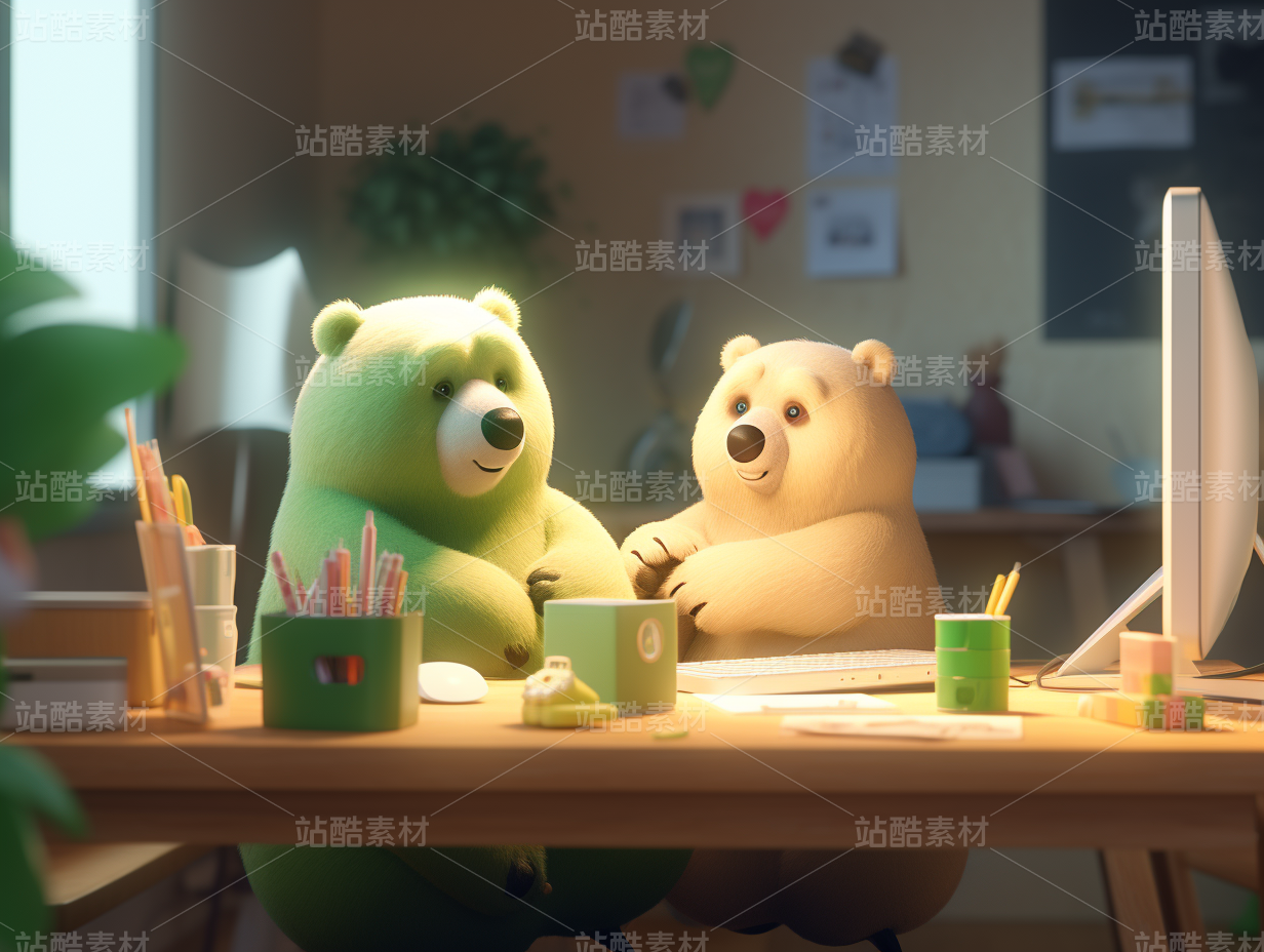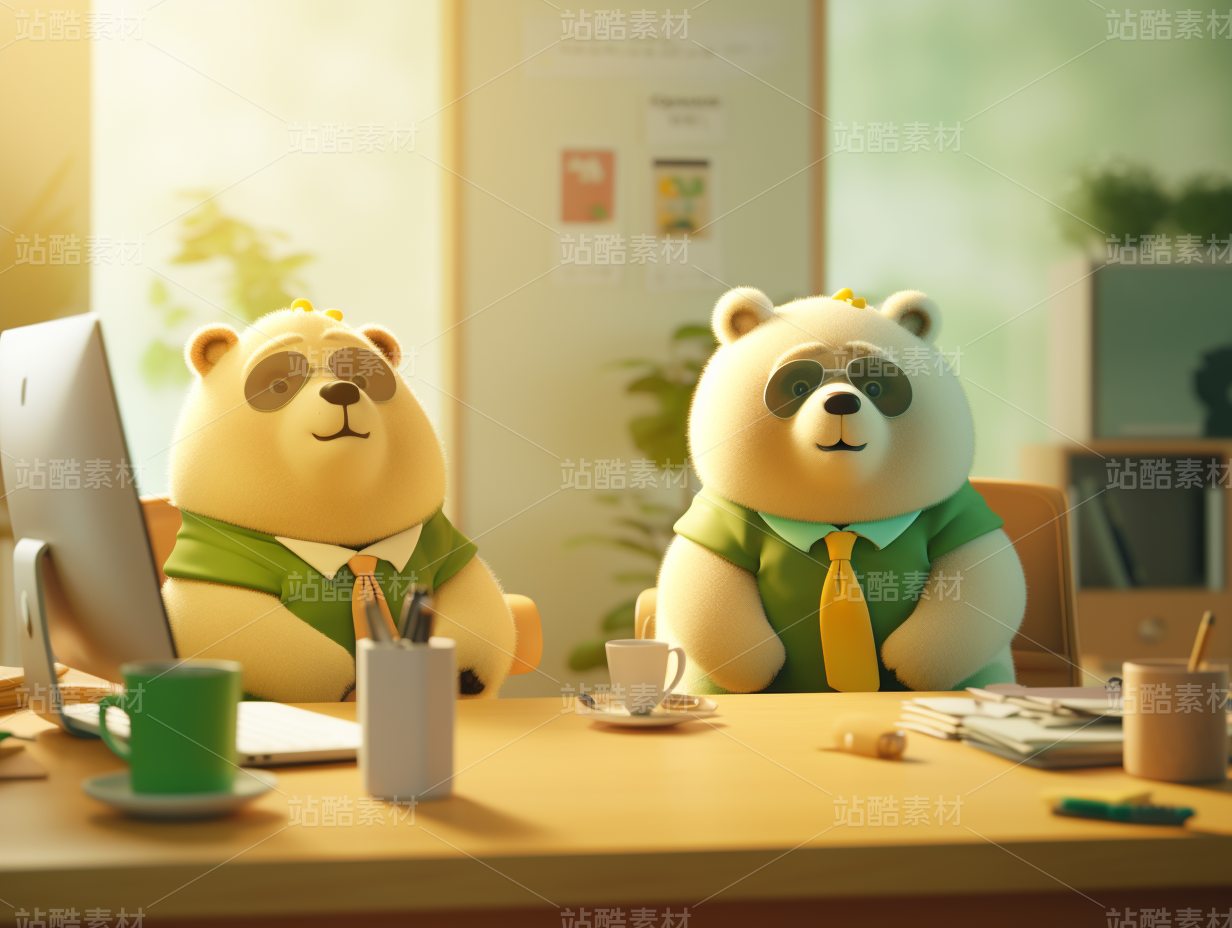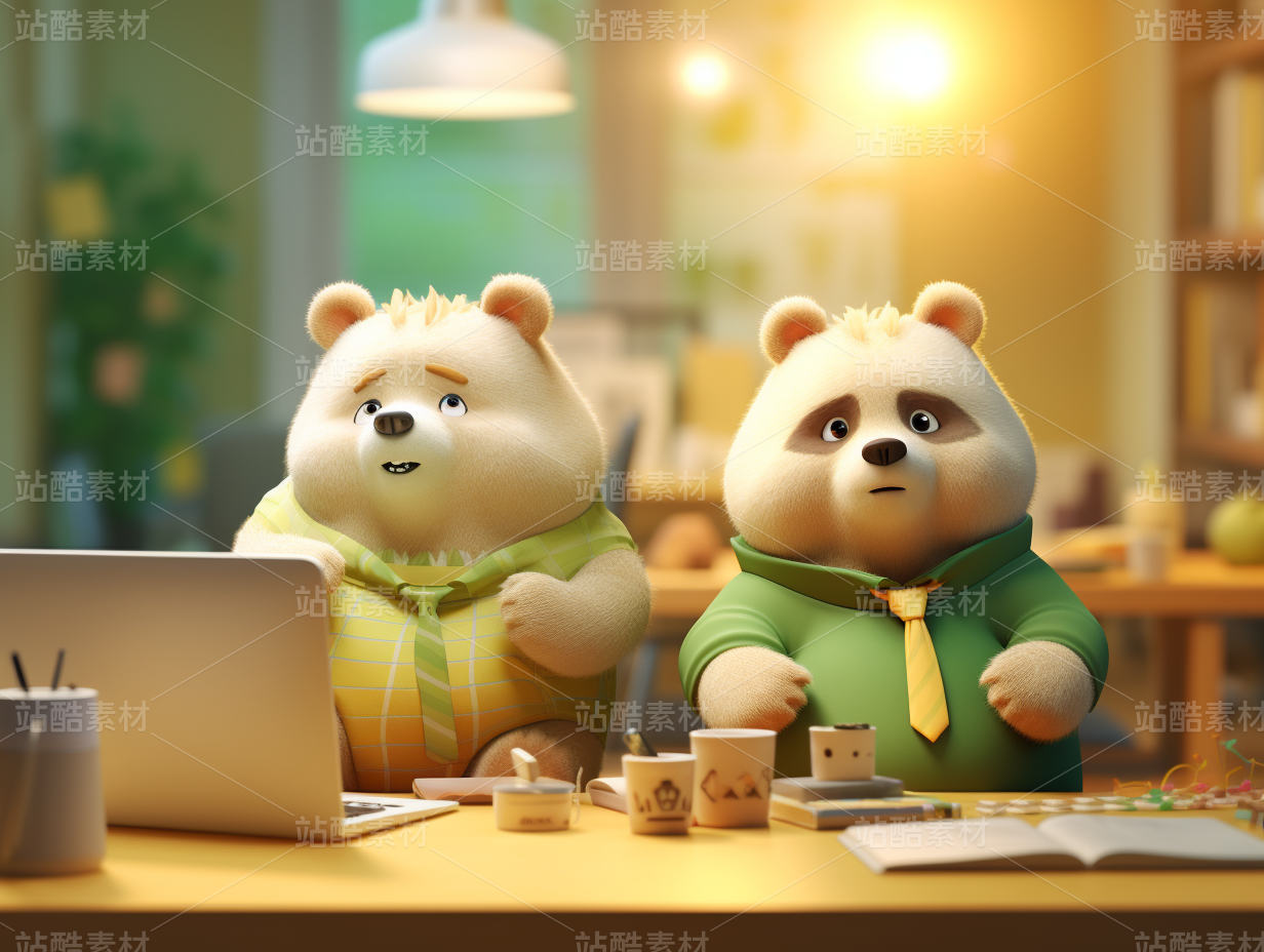 彩色3D卡通动物宠物小兔子熊猫头鹰办公室树懒