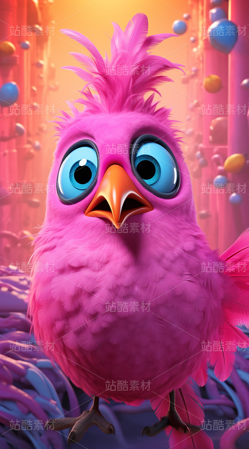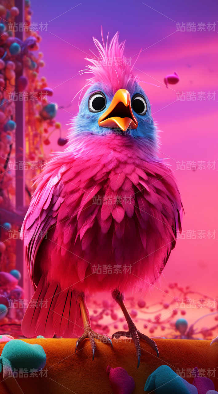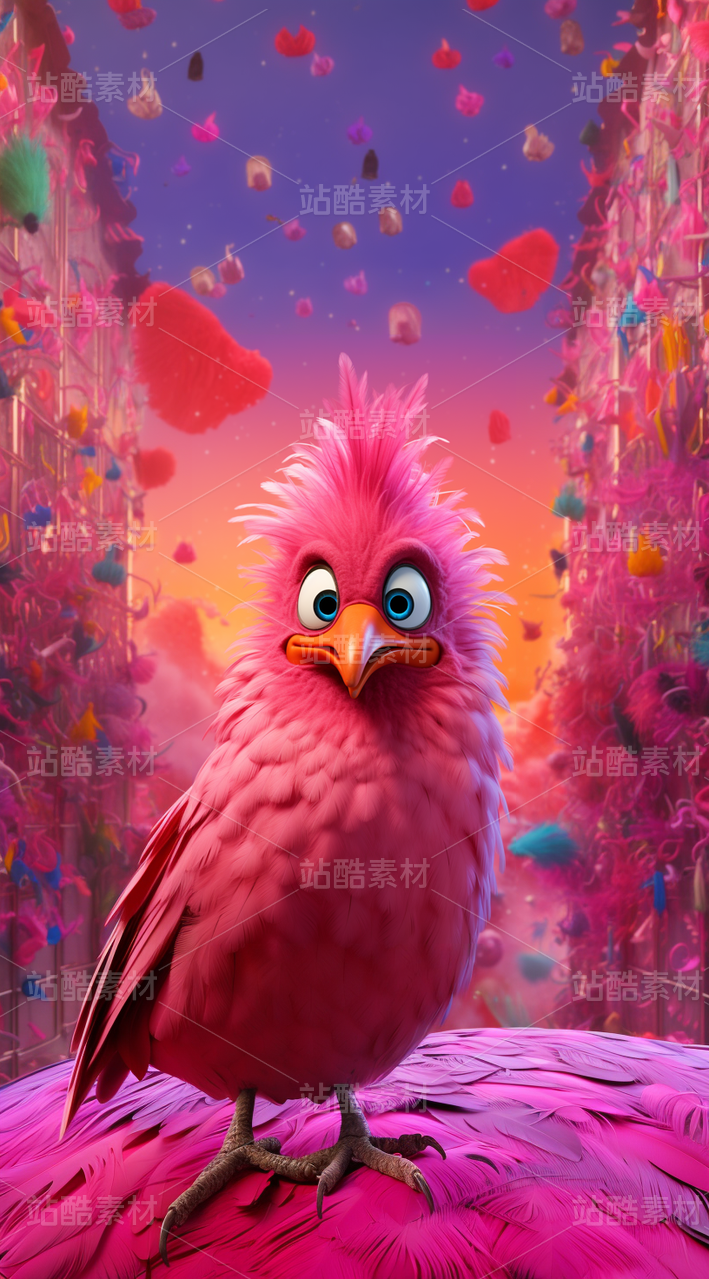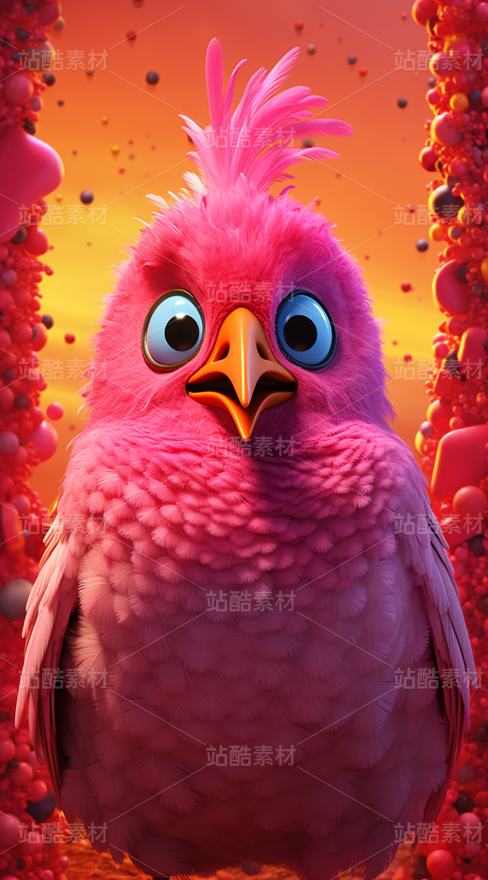 rex.823_face_to_camera_pink_bird_on_top_of_a_colorful_backgroun_89491bd6-cfae-4162-a3e5-4016d413d63c.png