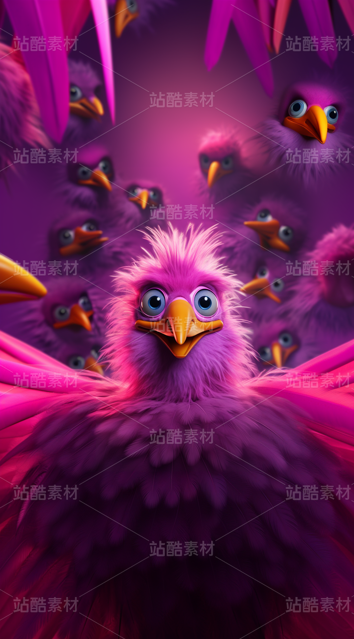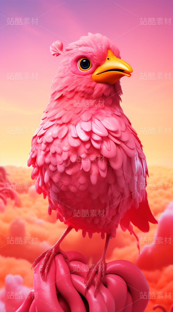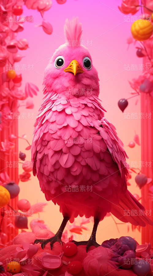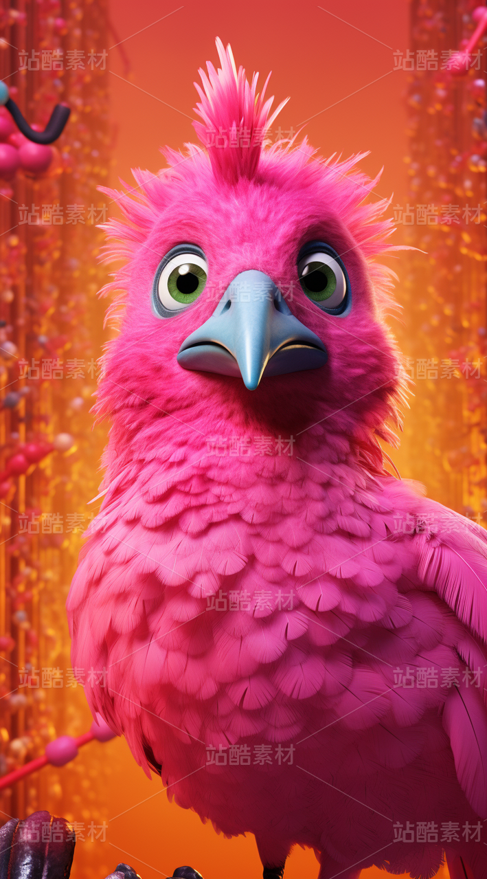 rex.823_face_to_camera_pink_bird_on_top_of_a_colorful_backgroun_89491bd6-cfae-4162-a3e5-4016d413d63c.png