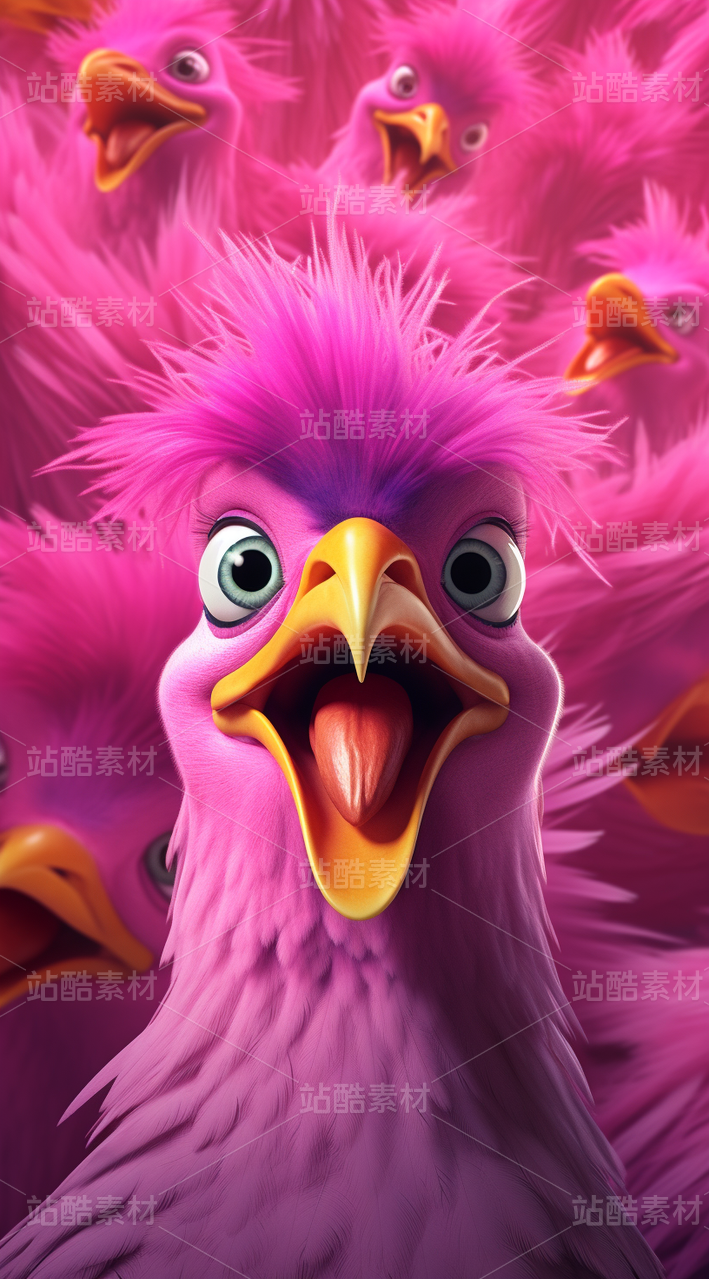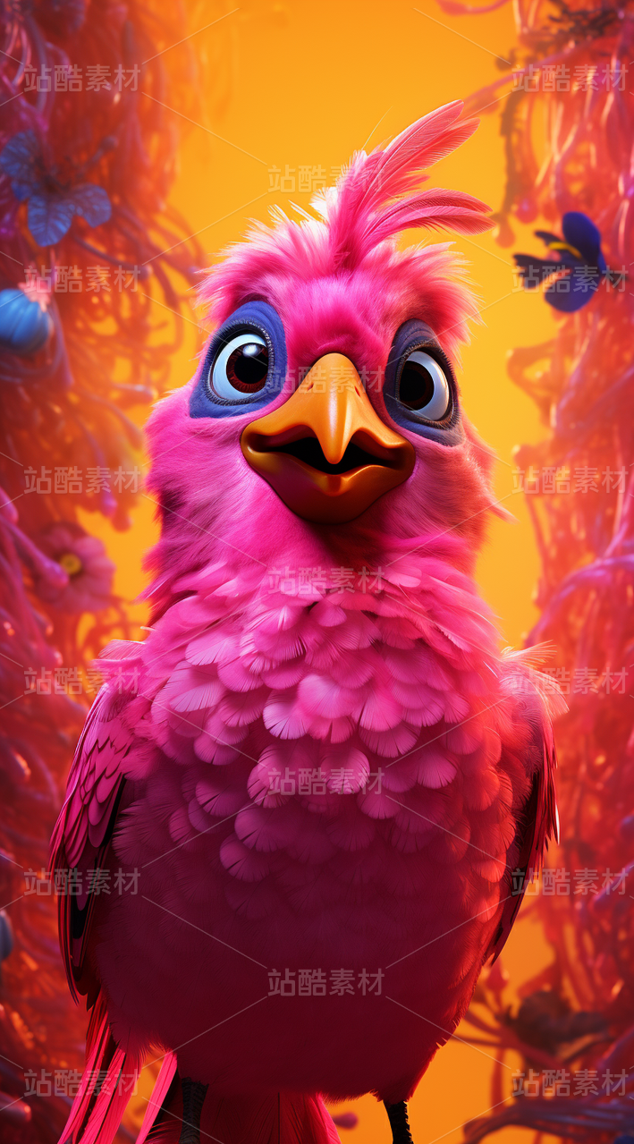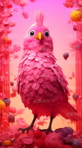 rex.823_face_to_camera_pink_bird_on_top_of_a_colorful_backgroun_74160177-326b-491f-85ce-3b708c44d592.png