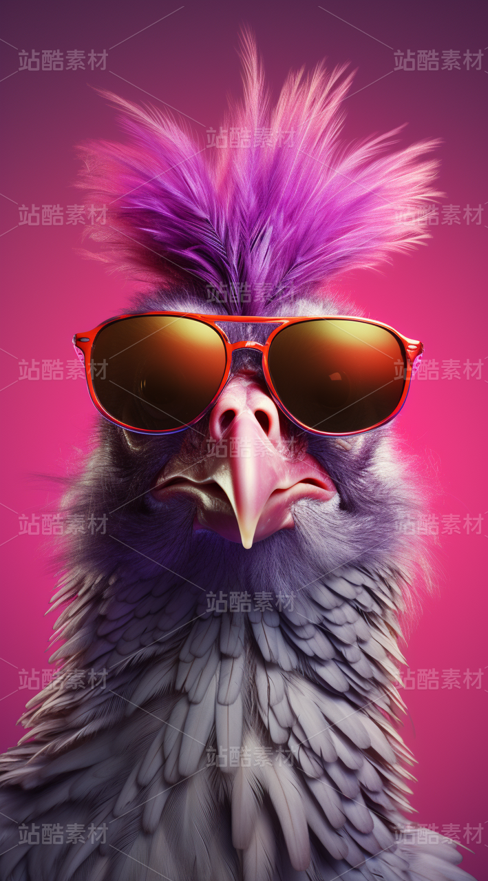 rex.823_a_is_wearing_pink_sunglasses_with_purple_feathers_in_th_357c25c1-a737-4cad-a3c8-3d15d5d901bc.png
