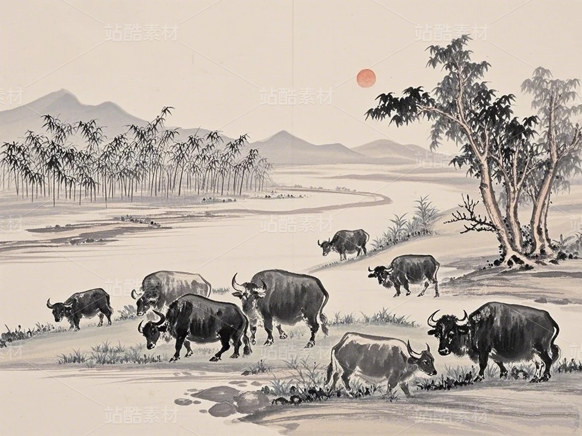 水墨江南风景画意境山水装饰画客厅水墨山水装饰画