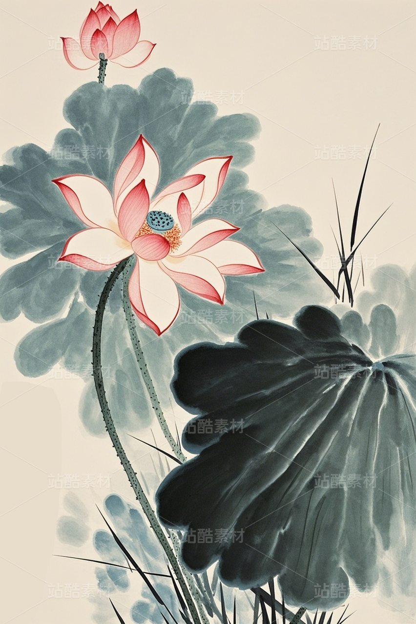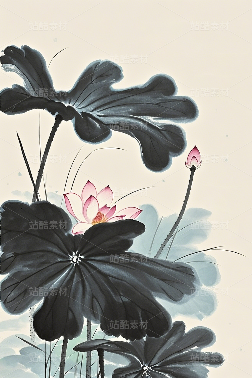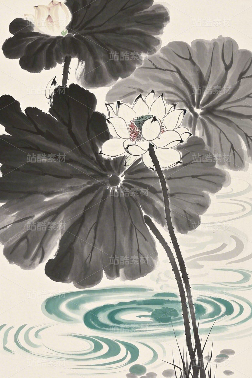 水墨中国风毛笔画国画图片素材工笔人物山水