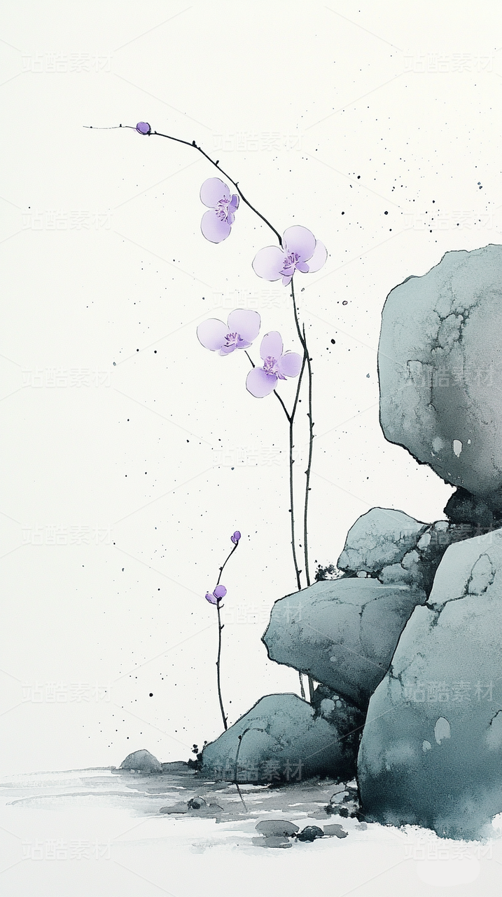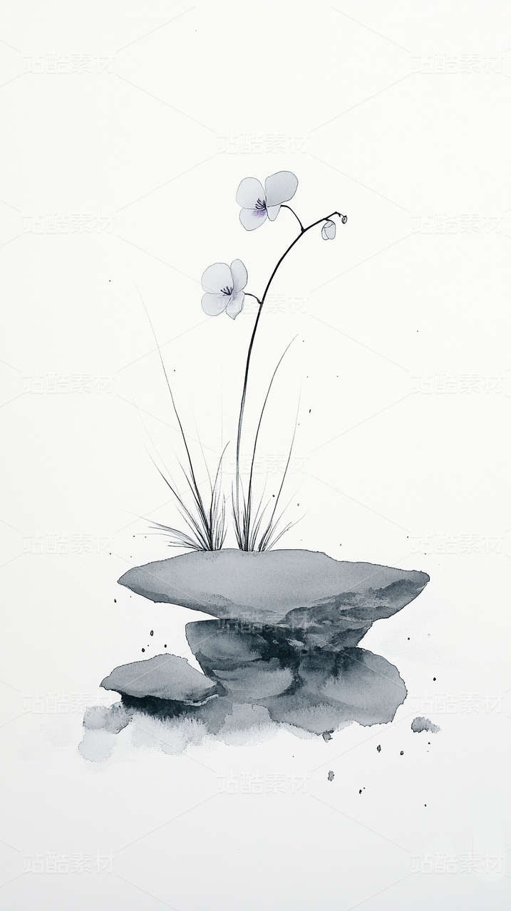 中国传统水墨画国画极简兰花