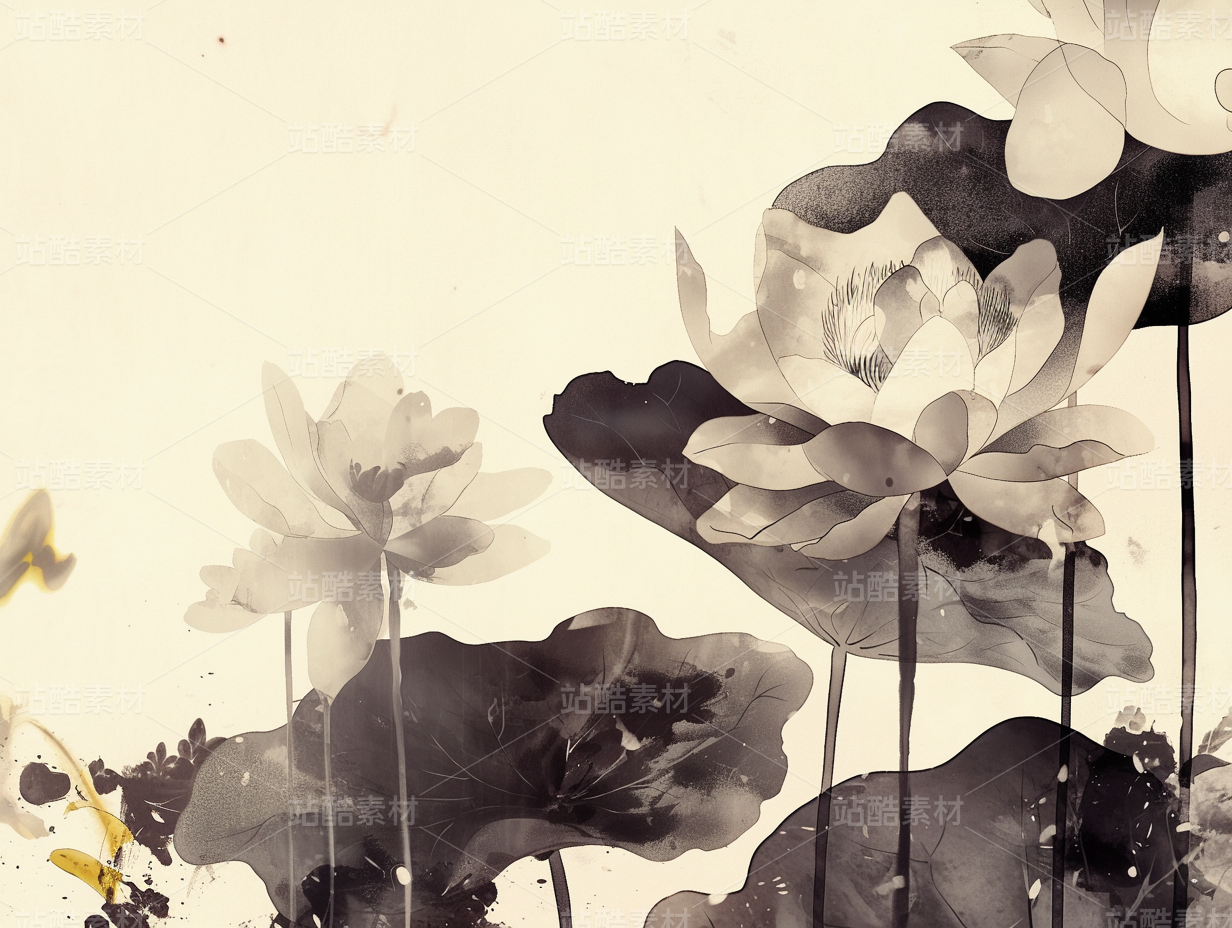 水墨版素材荷花插画