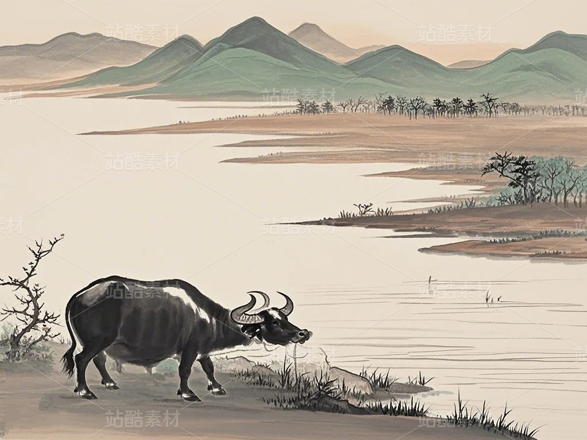 水墨画,国画,水牛