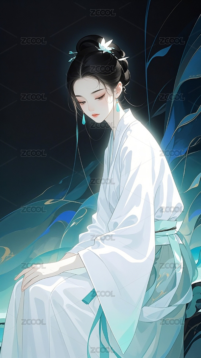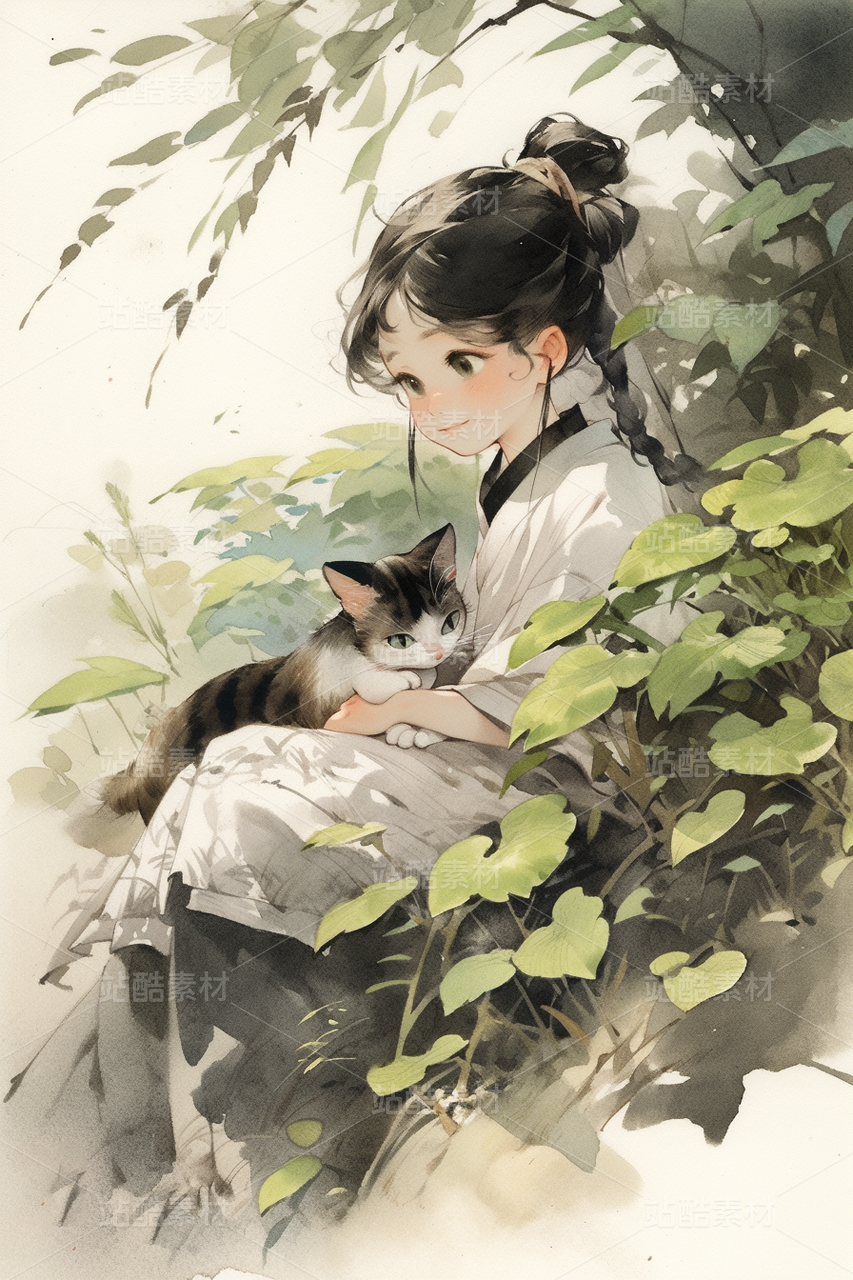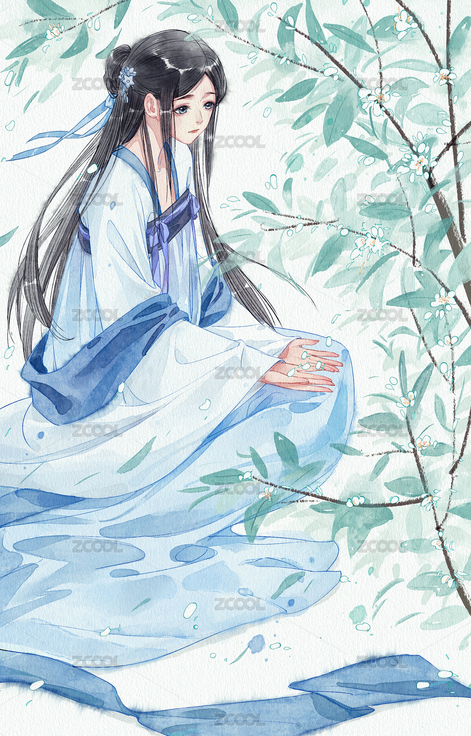 水墨中国风毛笔画国画图片工笔人物花鸟山水