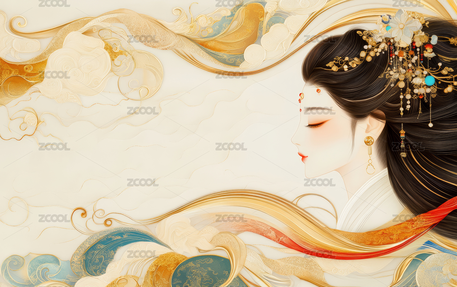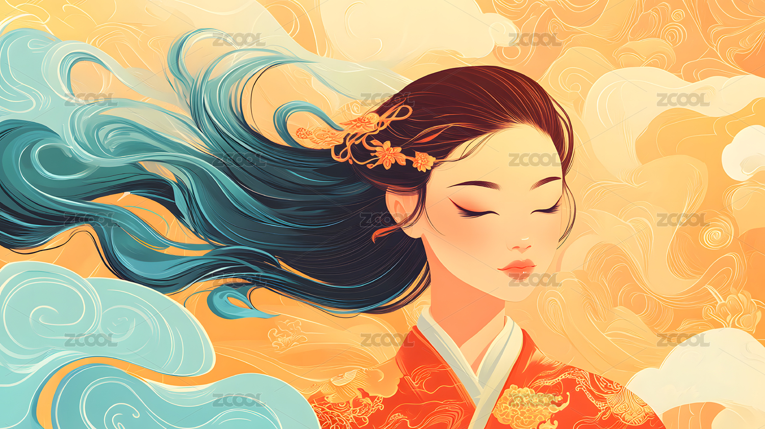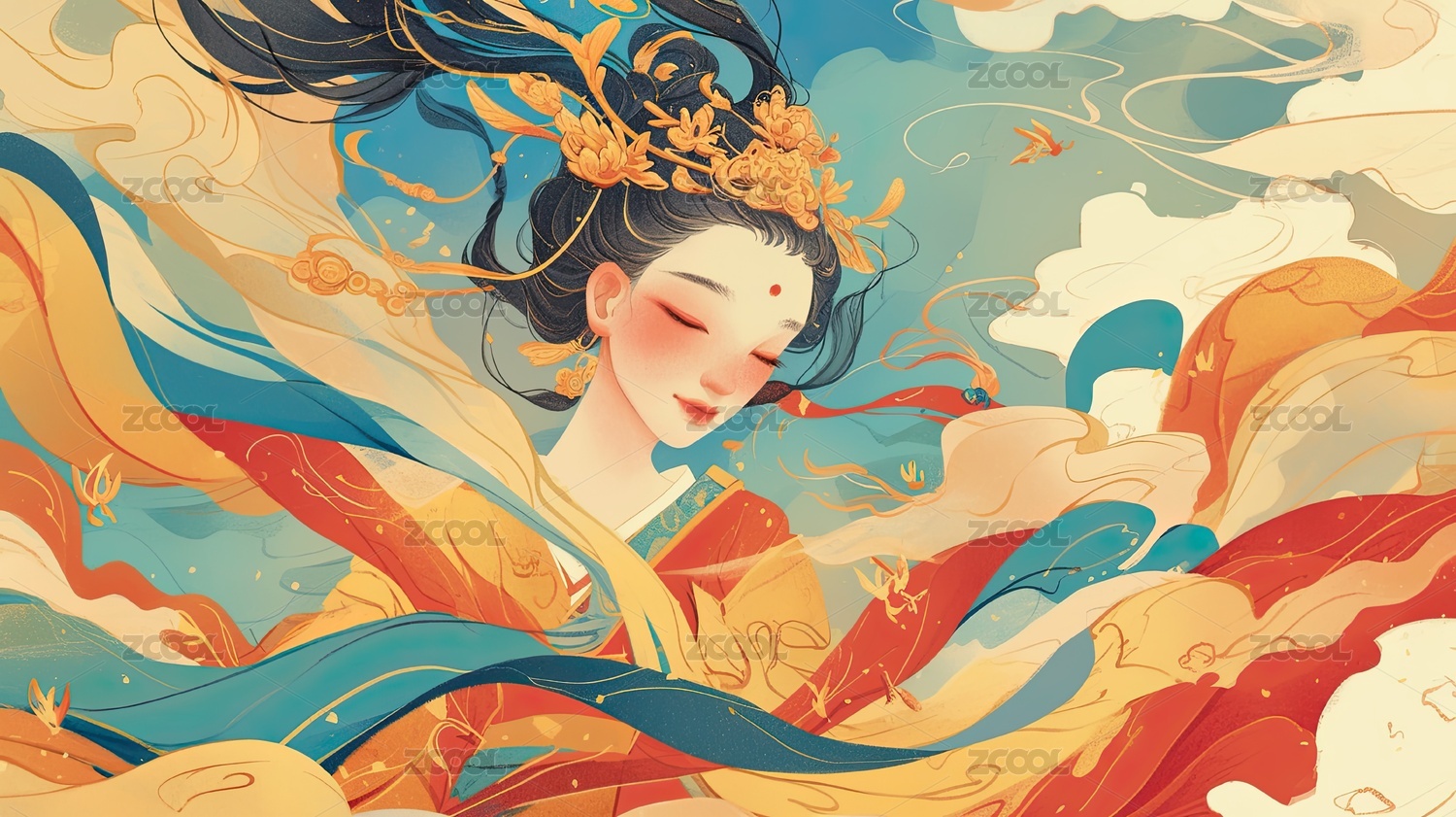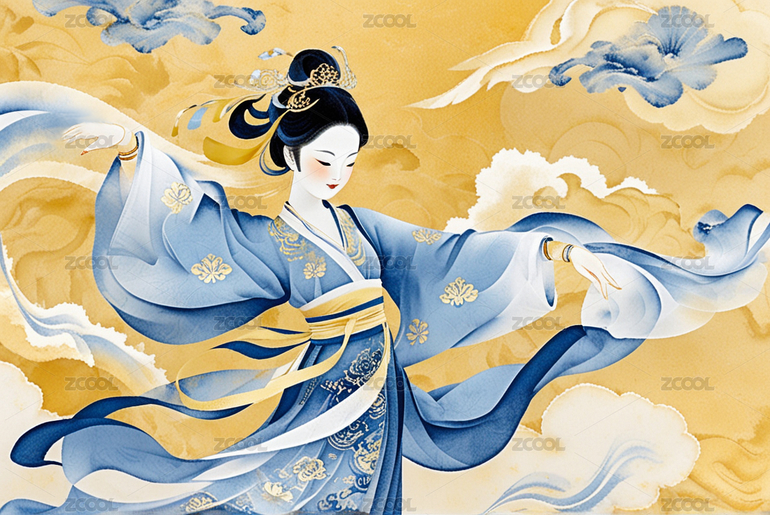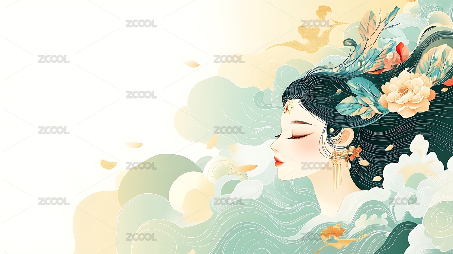 古风女子祥云图