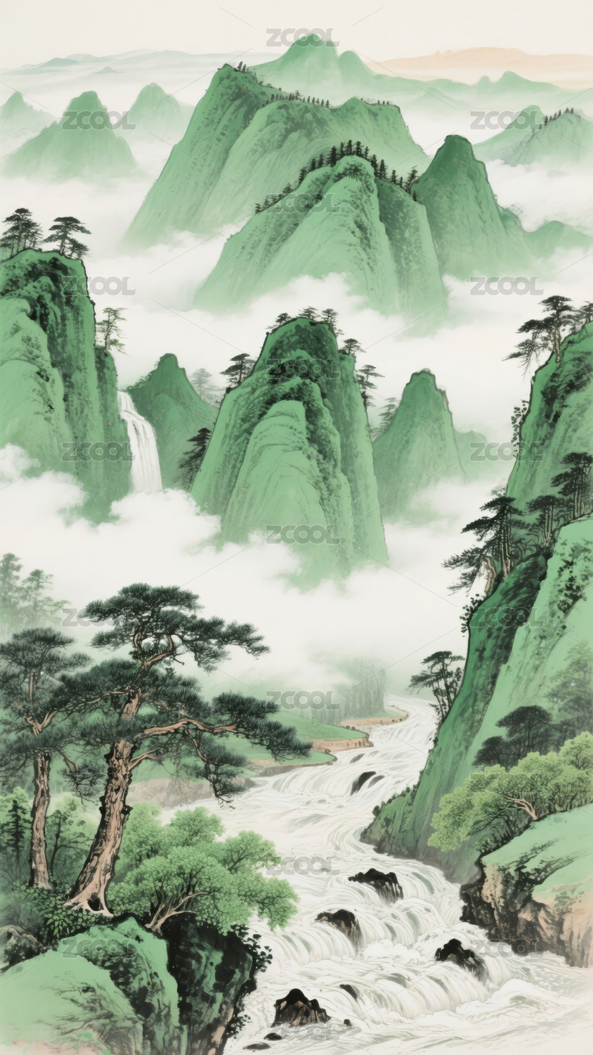 这是一幅水墨山水插画-雨水,可将水墨山水插画应用于文化创意产品的设计中,如丝巾、手帕、手机壳、鼠标垫等,使产品具有独特的艺术价值和文化特色;也可用作酒店、餐馆、茶馆的装饰;