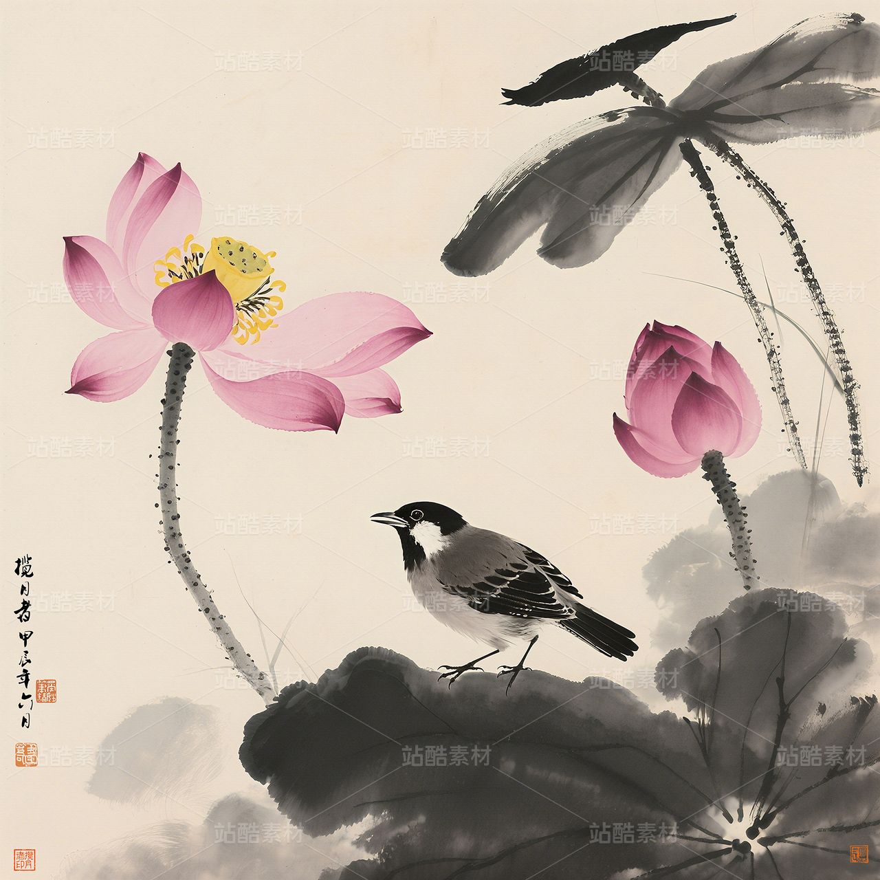 水墨花鸟古风画插画花鸟装饰画工笔花鸟新中式花鸟画