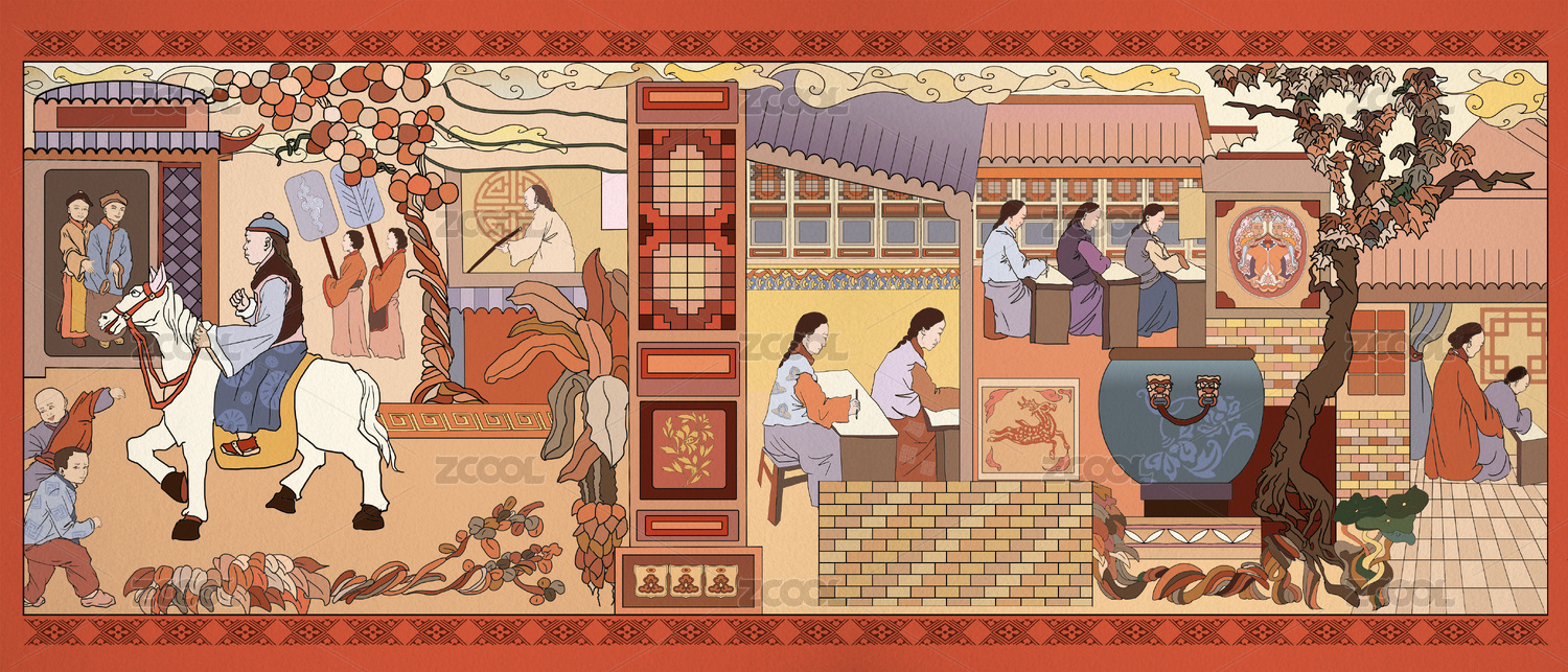 古代人物场景插画