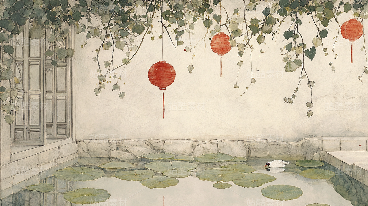 中国风庭院插画