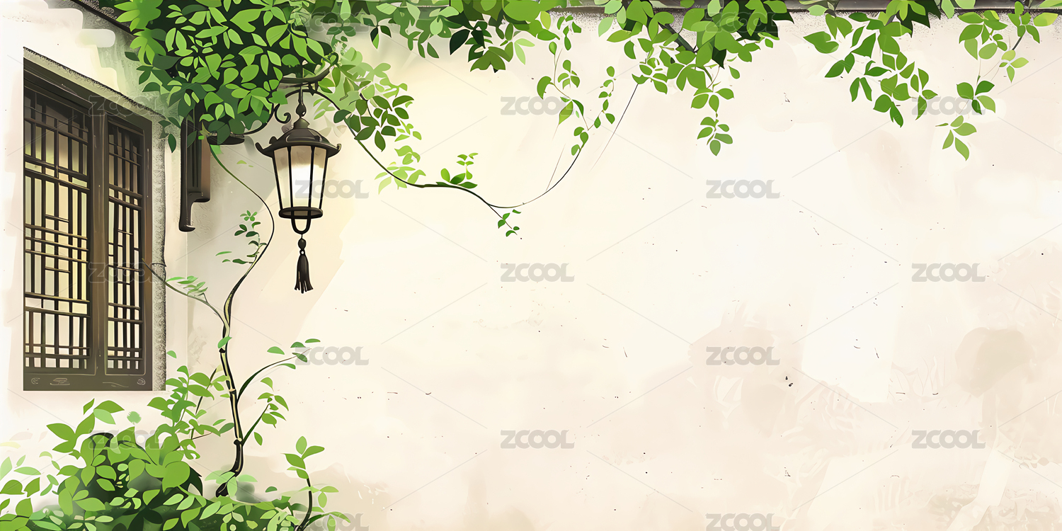 国风插画古代庭院墙外景