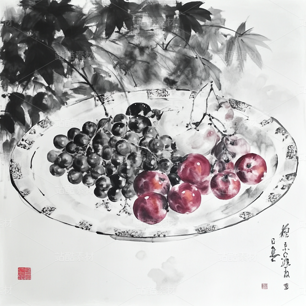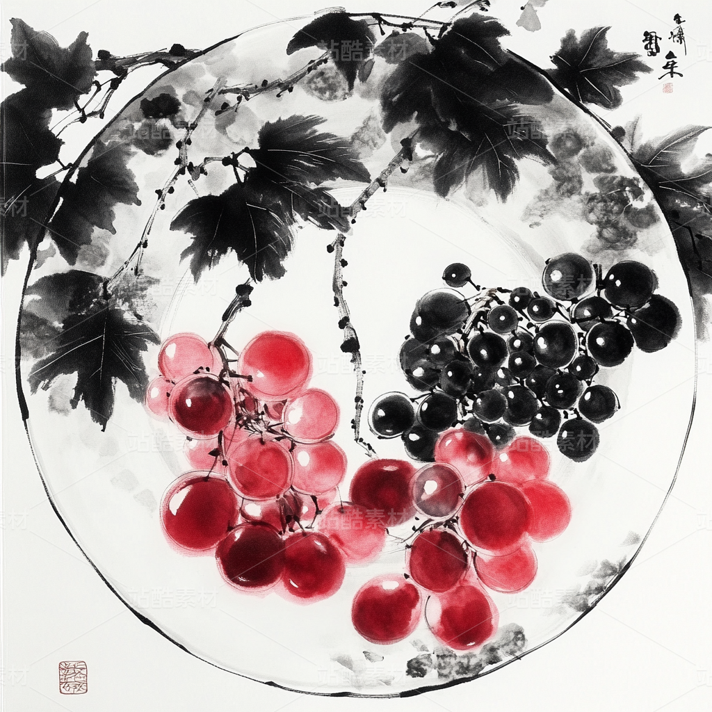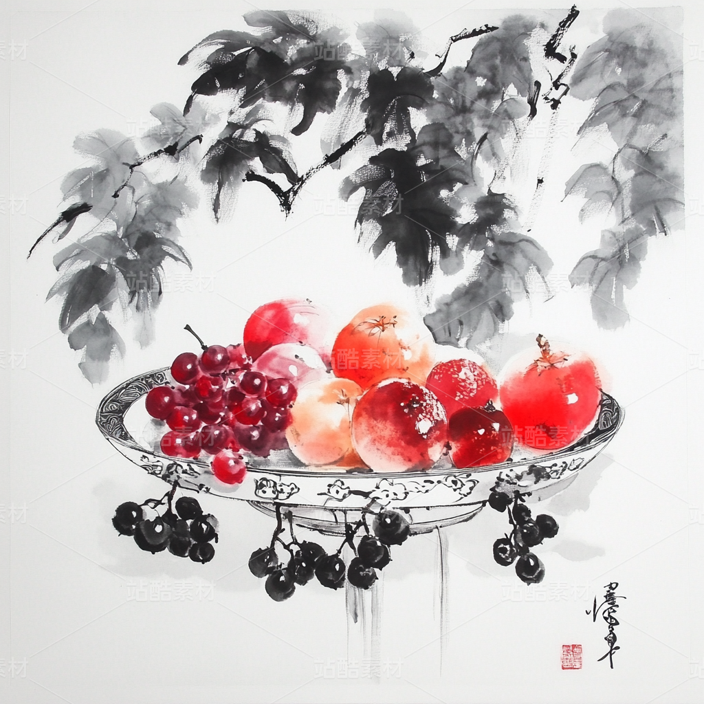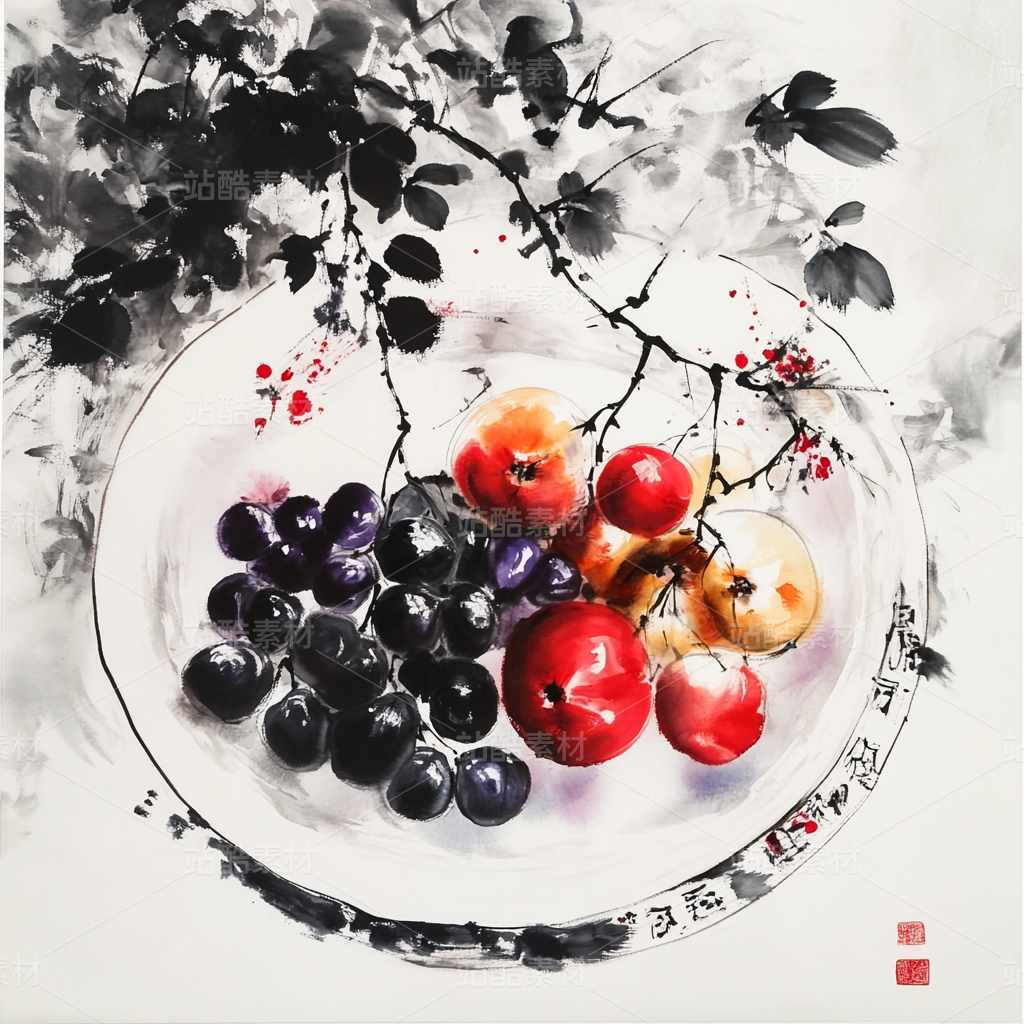 s1ckxgod0422_Chinese_Ink_Painting_Fruit_Plate_Black_White_and_R_54583122-37f0-4dcd-bdf2-22476fff86e