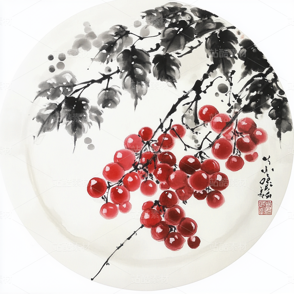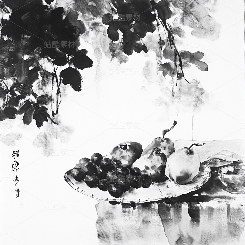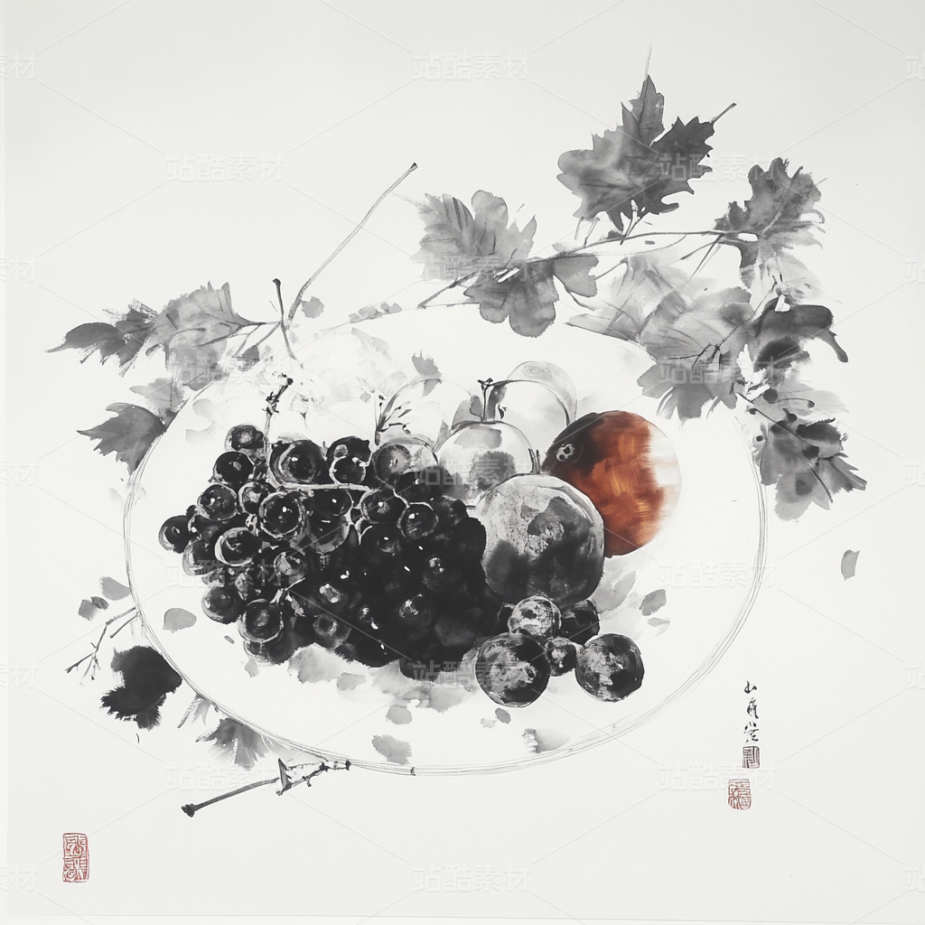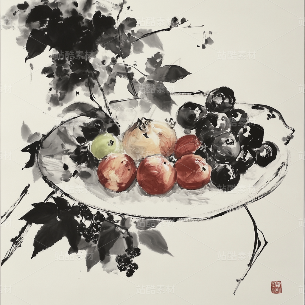 s1ckxgod0422_Chinese_Ink_Painting_Fruit_Plate_Black_White_and_R_54583122-37f0-4dcd-bdf2-22476fff86e