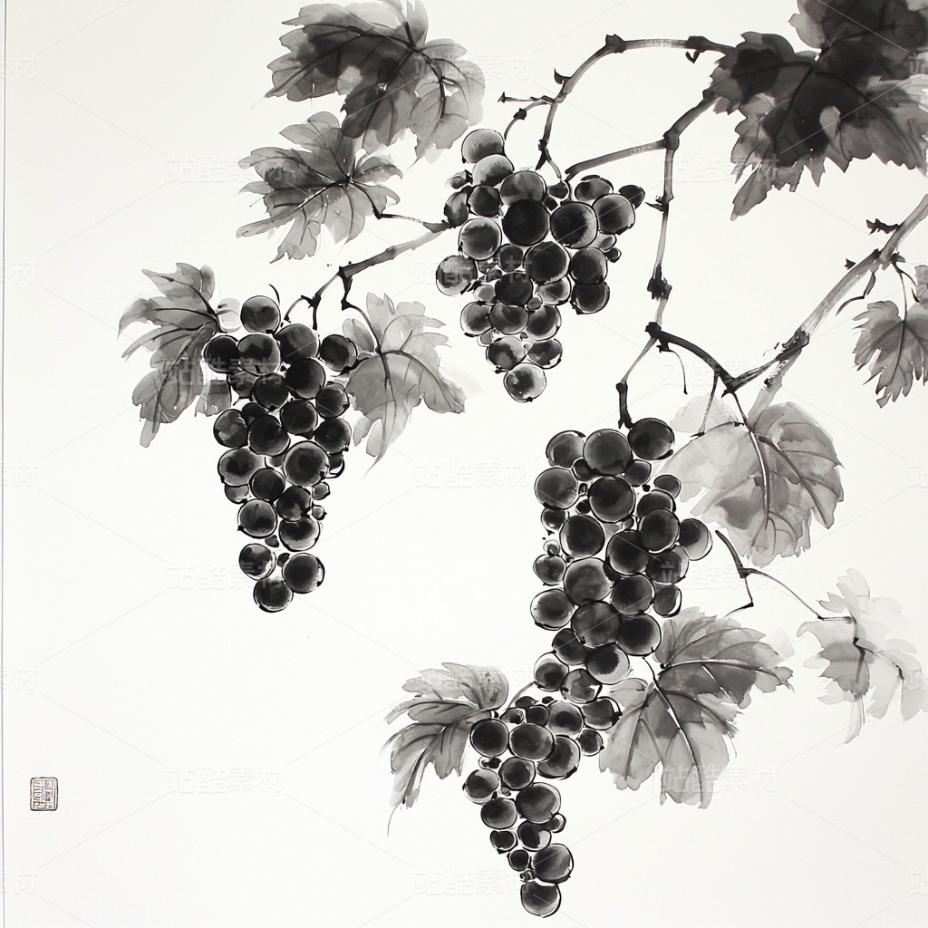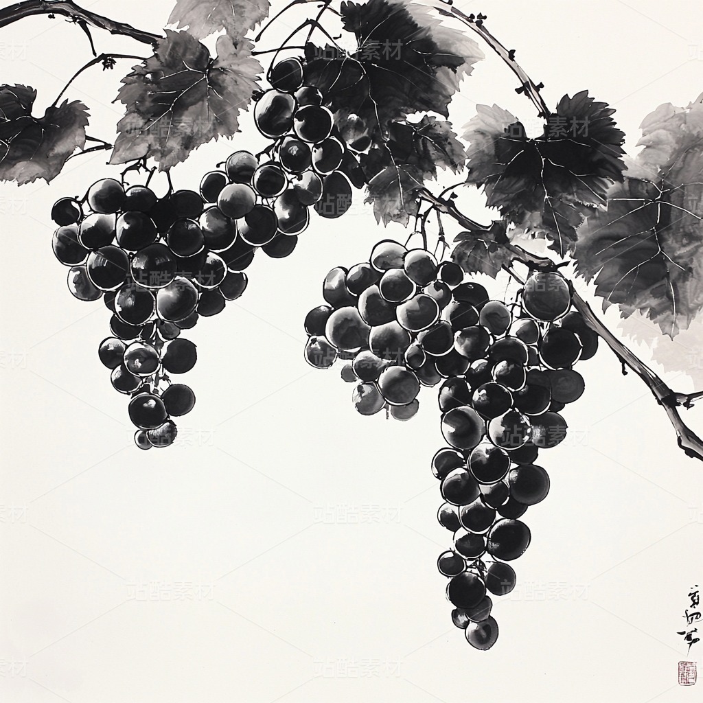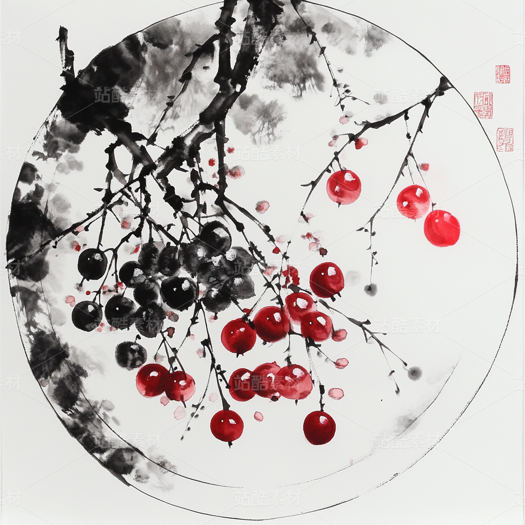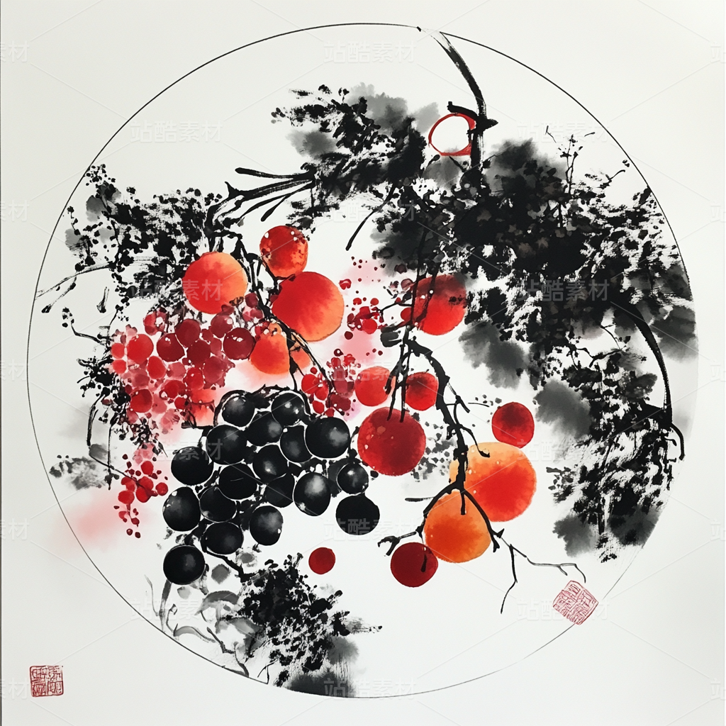 s1ckxgod0422_Chinese_Ink_Painting_Fruit_Plate_Black_White_and_R_54583122-37f0-4dcd-bdf2-22476fff86e