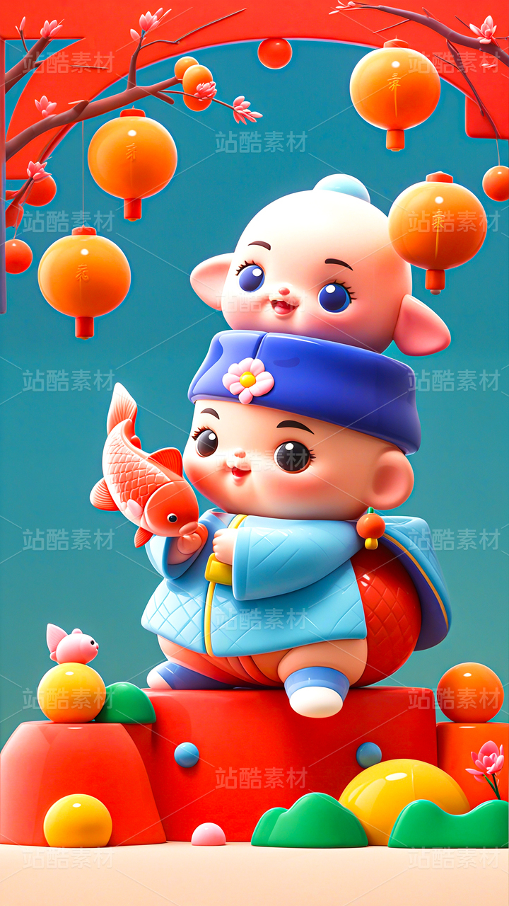 蛇年IP卡通形象吉祥物新年2025新春C4D三维渲染