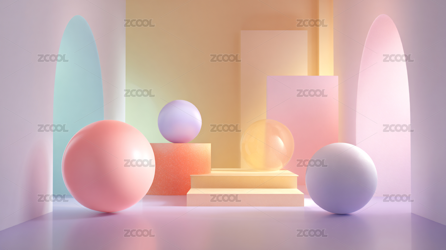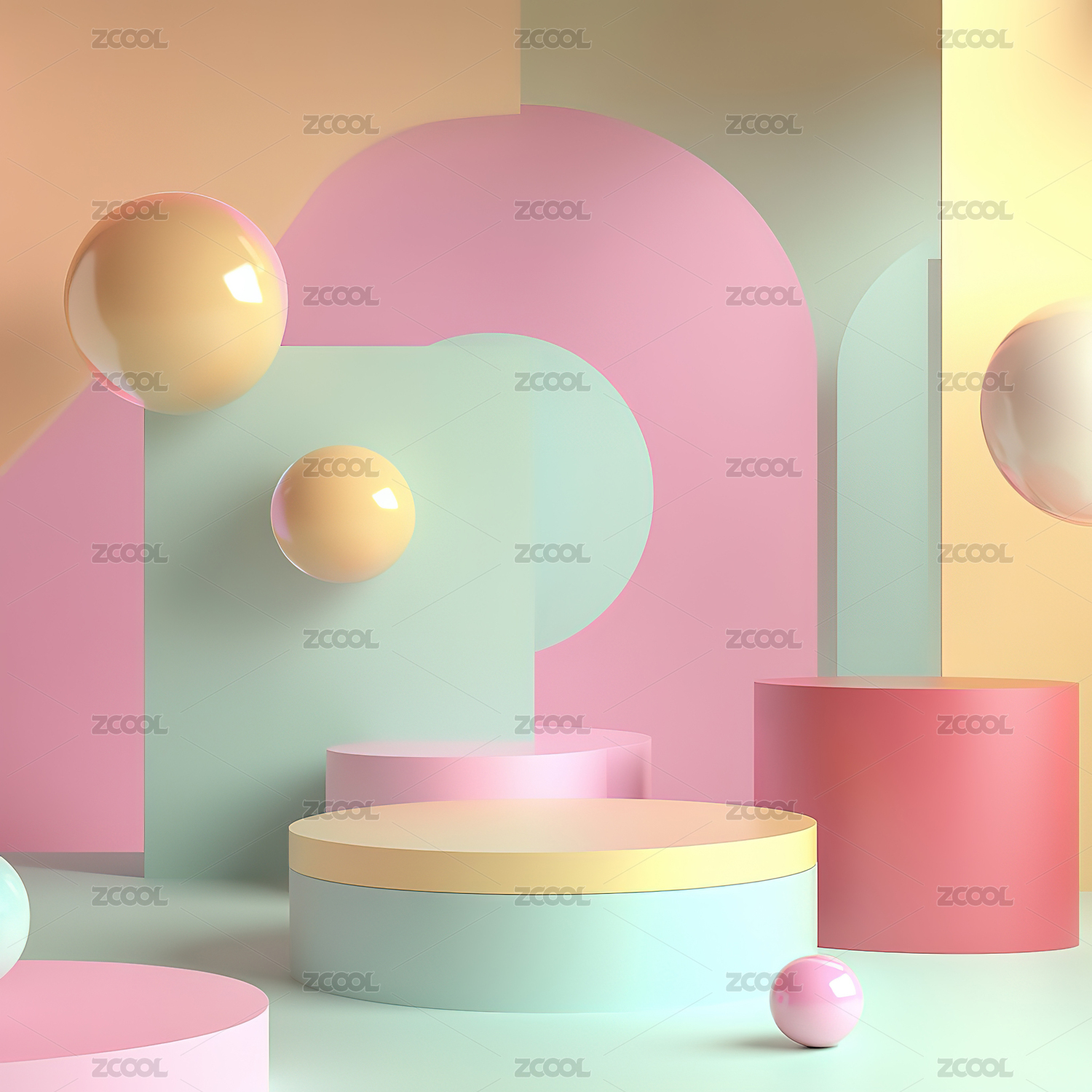 3D彩色空间艺术几何图形艺术舞台背景电商背景