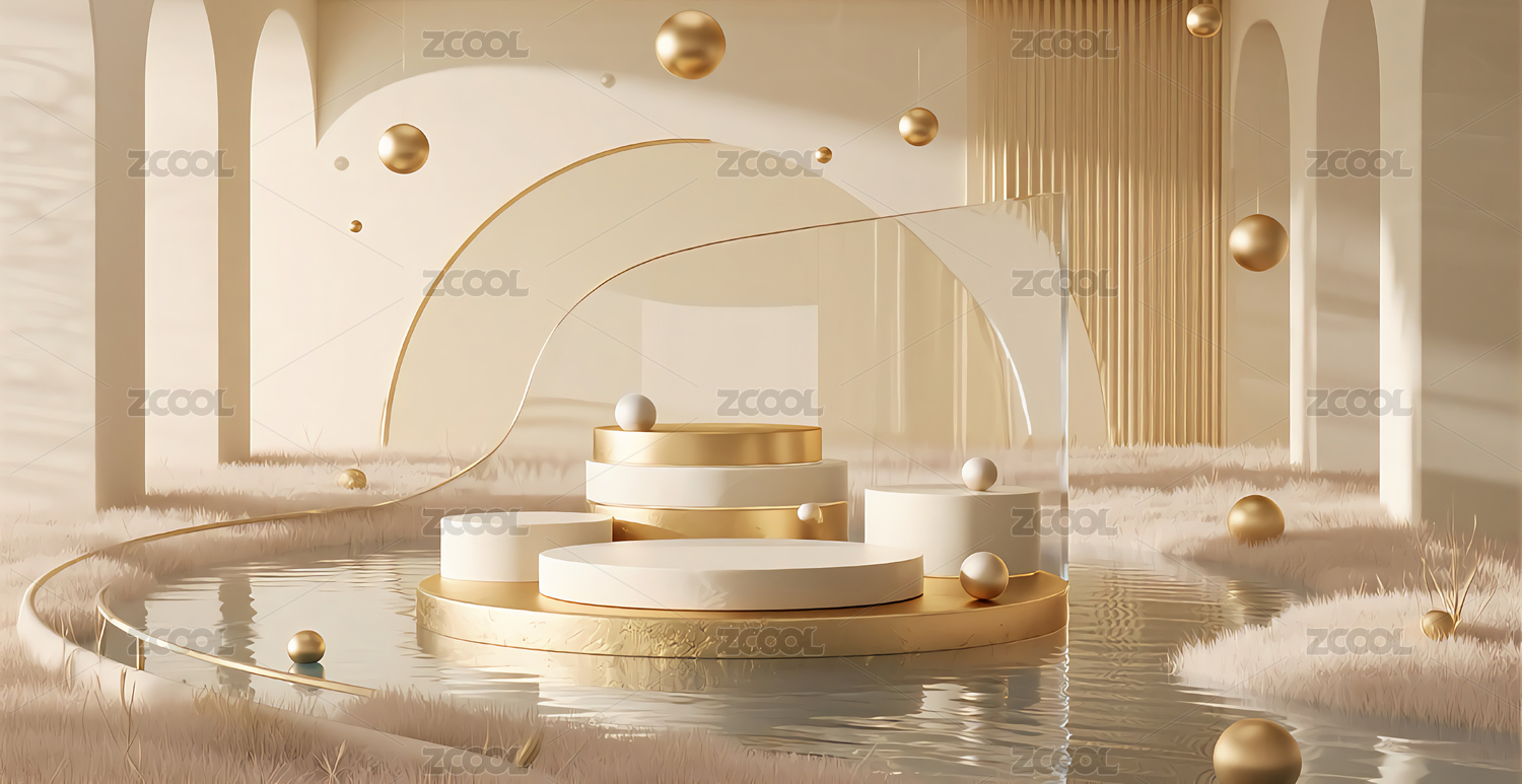 金色抽象艺术线条光影科幻空间几何电商背景