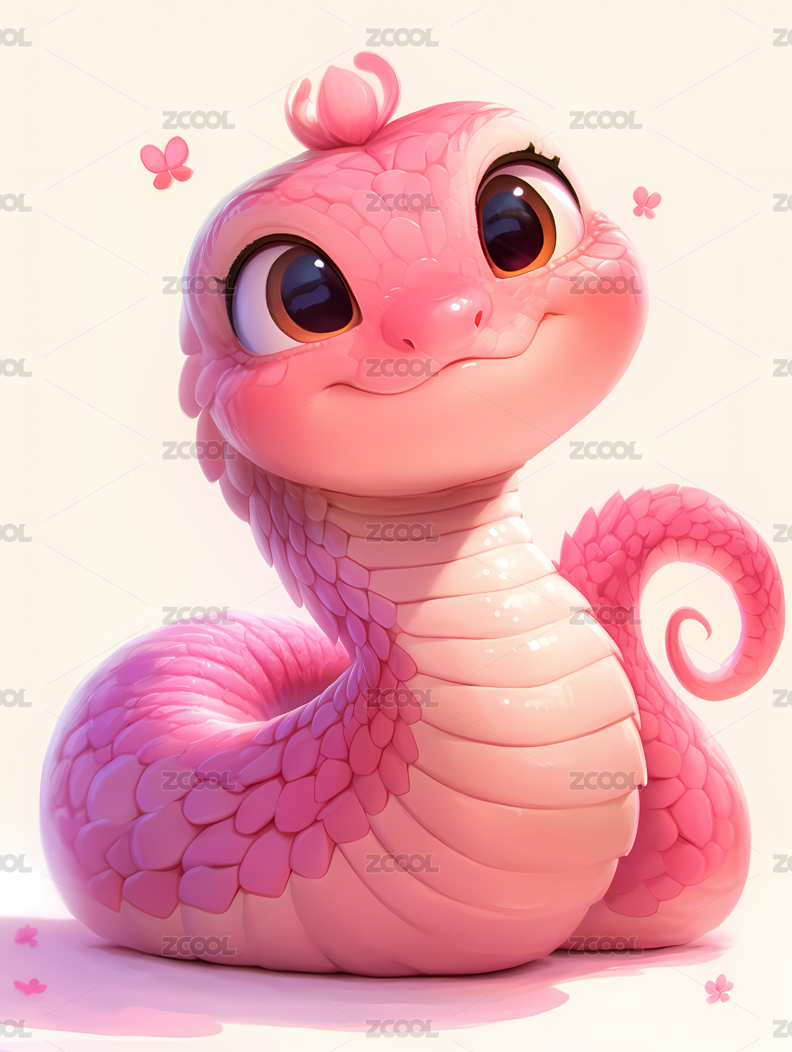 3D粉色可爱卡通生肖蛇插画